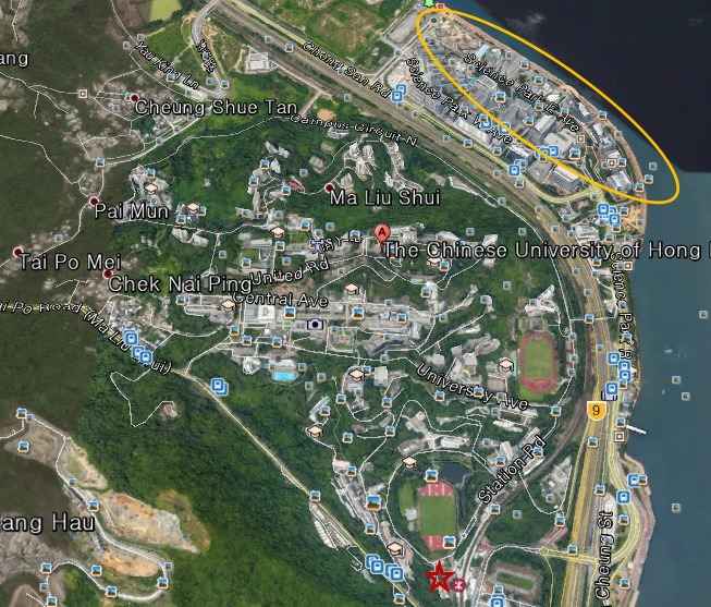 사이언스파크는 홍콩중문대 캠퍼스에서 멀지 않은 곳에 위치한 벤처 단지로서위의 지도에서 노란색 동그라미로 표시된 곳이다. 바다를 따라잘 조성되어 있는 산책로가 매력적이다. 그렇기 때문에 근처에 사는 현지인들이 자전거를 타거나 걷기 위해서 많이 찾는 명소이기도 하다. 바다를 바라보며 산책을 할 수 있다는 것은 말할 것도 없으며 조성된 지 얼마 안됐기 때문에 매우 깨끗하다는 것도 장점이다.