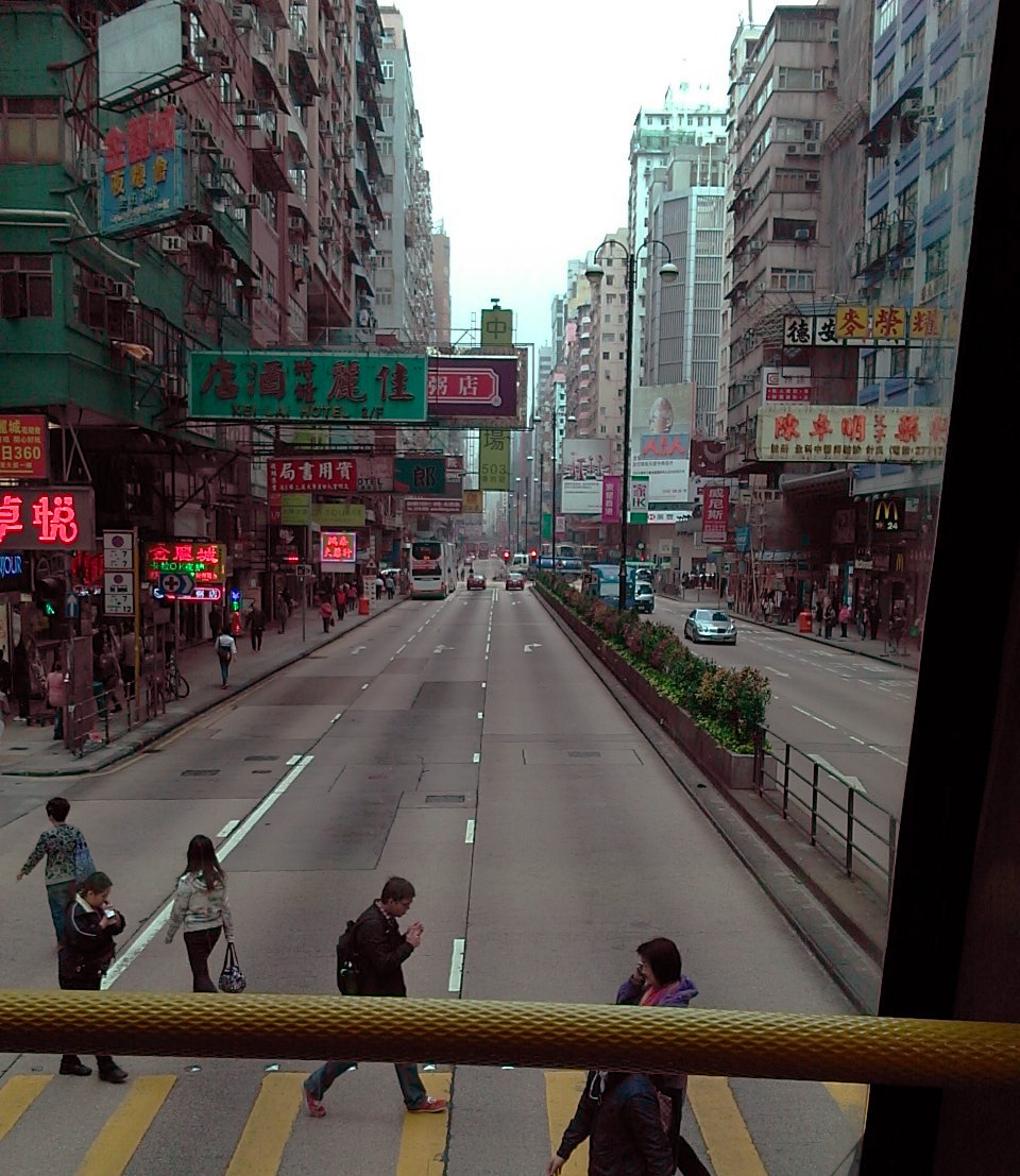 나중에 알게 된 사실인데 버스에 올라 2층으로 갔다는 것부터가 관광객임을 스스로 인증하는 것이었다. 1층이 미어터지지 않는 이상 바쁜 출근길에 좁고 가파른 층계를 오르락내리락하면서까지 2층으로 가려는 현지인은 없었다. 침사추이에서 몽콕으로 길게 이어진 도로 위를 거칠게 내달리는 버스에서 바라보는 풍경은 영화 첨밀밀의 한 장면을 보는 듯하다.