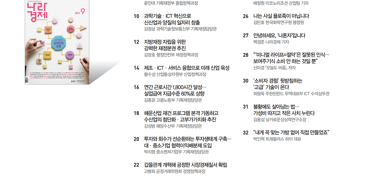 KDI에서 전화를 주셨다는데 아무리 생각해도 내가 그곳에서 전화를 받을 일이 없었다. 혹시나 나도 모르게 척을 지거나 원수질 일을 했나 싶어서 살짝 걱정이 되려는 찰나, KDI에서 발간하는 '나라경제'라는 잡지의 9월호에 실을 인터뷰를 하고싶다는 말씀을 해주신다.