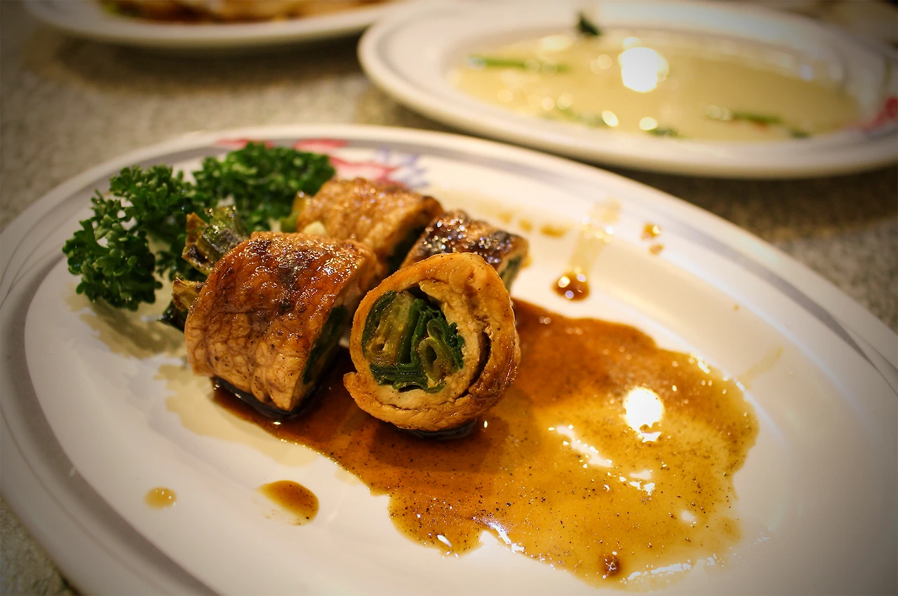 총 네 가지의 요리가 상에 올라왔다. 조개 볶음과 시금치 볶음, 박하향이 나는 면요리가 하나 있었고 파를 돼지고기로 말아 구워낸 음식까지.