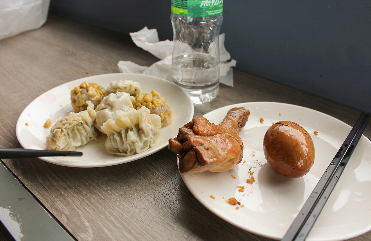 오른쪽 아래의 기름기가 맨들한 호빵같은 것이 육원이다. 겉은 아주 쫄깃하고 속에는 돼지고기와 죽순이 적당히 들어있다. 하나에 40원이니 한국돈으로 1500원 정도 하는데, 먹을때는 저렴하다 생각했으나 다시 생각해보니 그렇게 싸다고 얘기하기는 힘들겠다.