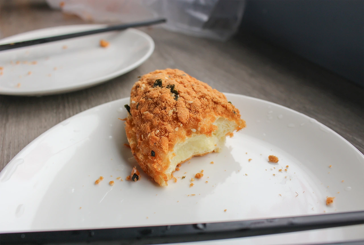 날이 조금 더 추워졌고, 몸에 잔뜩 진 짐이 거추장스럽기 시작했다. 간단히 짐 정리를 할까 싶어 숙소로 돌아왔다. 애초에 끼니를 해결할 요량으로 먹은 육원이 아니었기 때문에 근처 빵집에 들러 점심거리를 조금 사왔다. 사진 속 빵 위에 올려진 가루는 돼지고기를 말려서 간 것이라고 하는데 소위 말하는 '단짠' 그 자체, '단짠'의 성서이자 교과서와도 같은 맛이다. 대학 교양수업으로 '단짠학개론'이 있다면 그것은 아마 이 빵으로 말미암아 개설되는 과목일 것이다. 한마디로 어마어마하게 맛있다는 뜻이다. 대만에 다시 갈 일이 생긴다면 저 빵 만큼은 반드시 먹어야겠다 생각했을만큼 맛있었다.