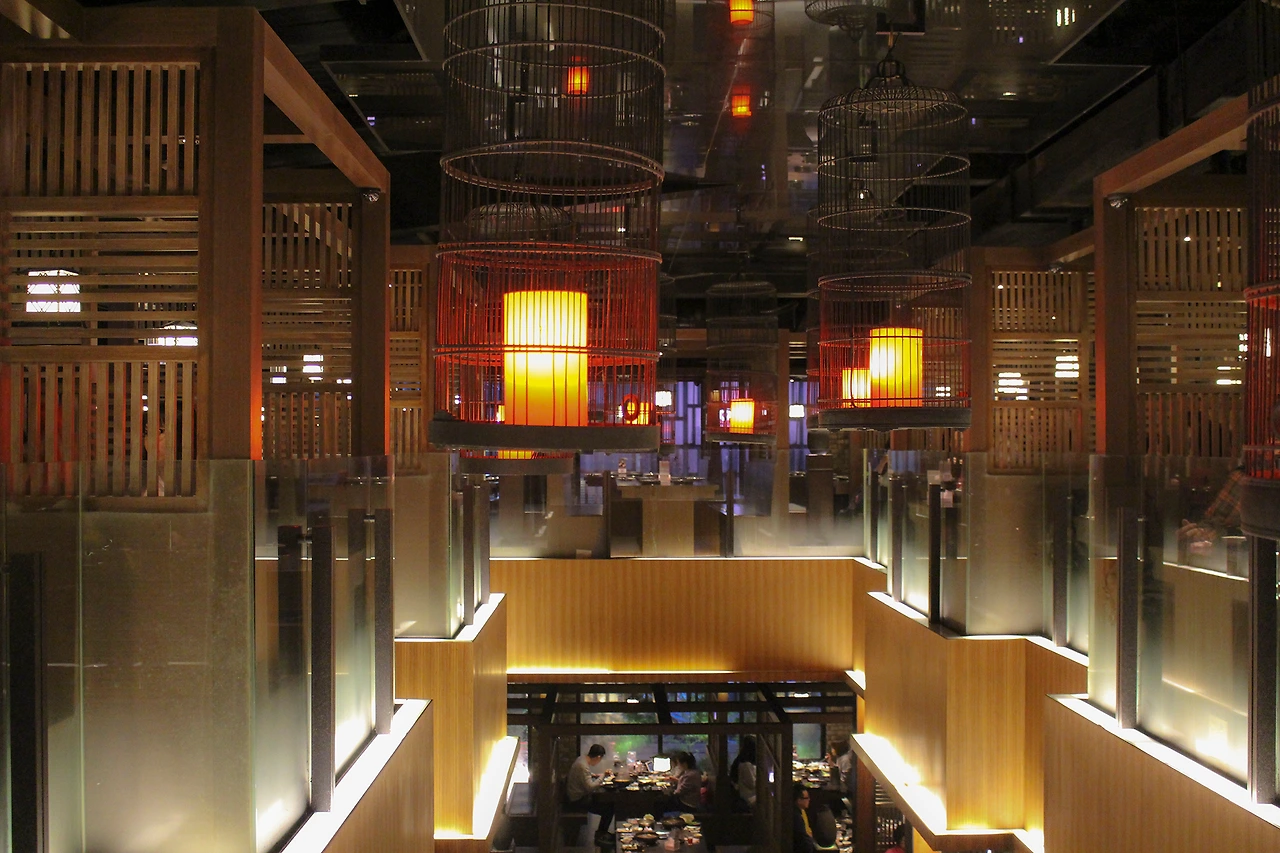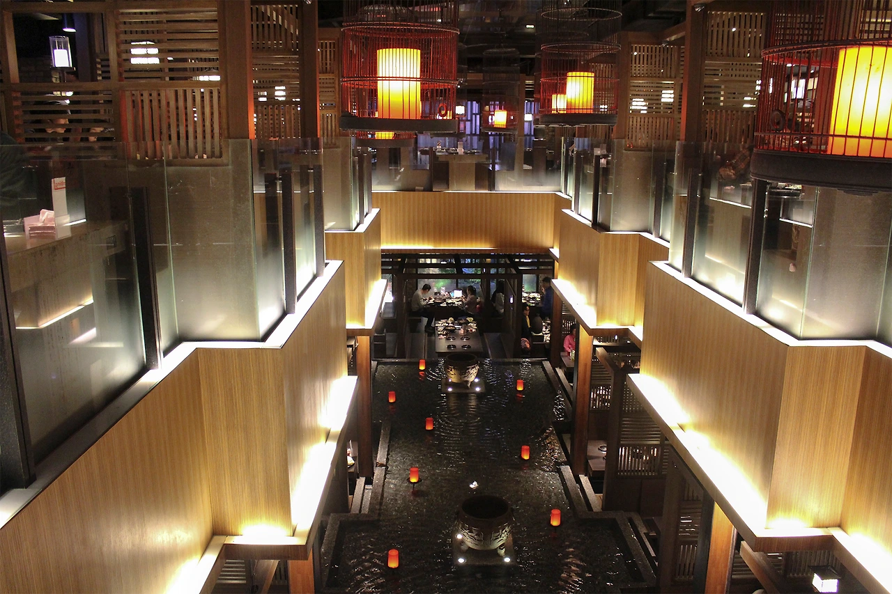 '칭징훠워궈', 타이중에서 가장 유명하고 대중적인 훠궈 식당이면서 꽤 고급스러운 곳 중 하나이다. 손님 한 명이라도 더 받기 위해서라면 남는 공간 하나도 아까울 법 한데, 가장 눈에 잘 띄는 1층의 한가운데를 분수와 연못에 양보한 결정이 감탄스럽지 않을 수 없었다.