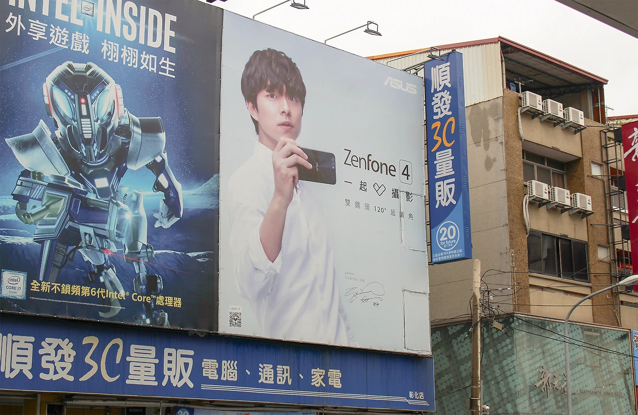 대만에도 이렇게나 잘생긴 사람이 있구나 감탄하면서 한참을 보고 있으니 어딘지 모르게 익숙한 얼굴이다. 자세히 살펴보니 오른쪽 아래에 '공유'라는 두 글자가 선명히 새겨져있다. 한국에서 잘생긴 얼굴이 어딜 가겠는가. 참으로 잘생겼다.