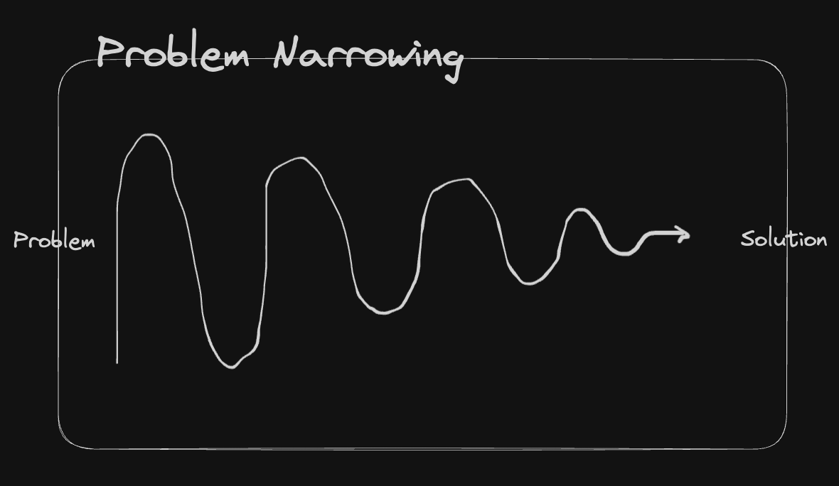 Problem Narrowing은 내가 만든 용어다. 문제를 해결하기 위해 의사소통하는 과정에서 진짜 문제를 찾고 해답에 다가가는 과정으로 그 어떤 기술이 개입하기 전에 의사소통 만으로 문제의 본질에 다가가는 과정을 뜻한다.