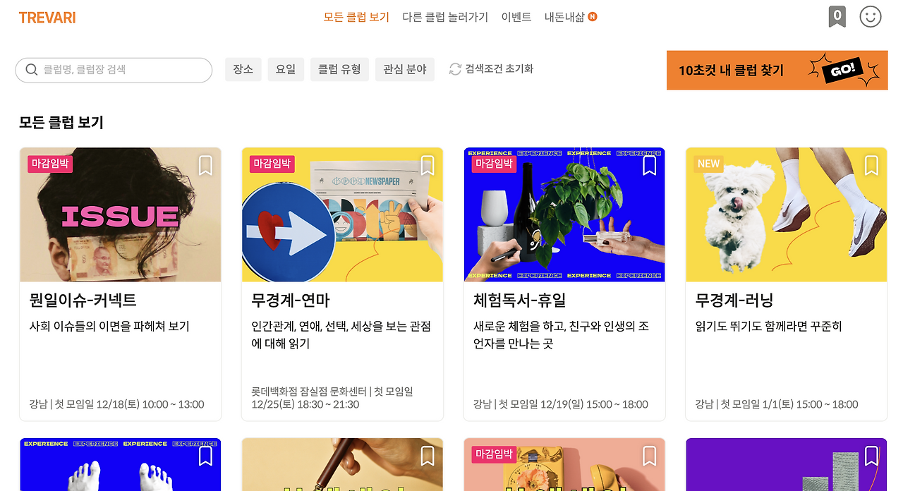 트레바리는 한국의 살롱문화를 대표하는 서비스입니다. 독서모임으로 시작한 트레바리는 강연이나 커뮤니티 성격의 모임까지 확장하여 사람들을 끌어모으며 성장 중인 기업입니다.