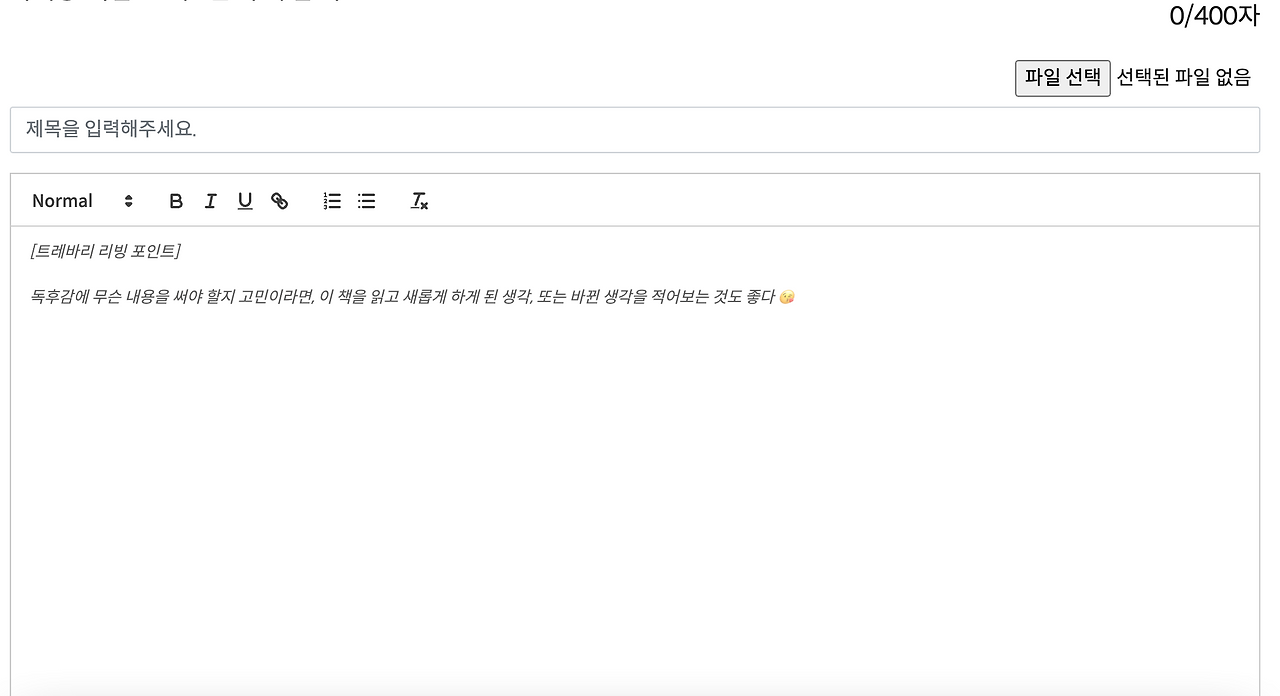 그렇다면 여기에 22만 원의 가치가 있느냐? 전혀. 내 대답은 전혀 없다입니다. 이런 시스템은 이미 많이 구축되어 있고 무료로도 풀려있습니다. 또한 트레바리의 서비스가 디테일한 사용자 경험에 특화되어있다고 생각하지도 않습니다. 예를 들어 웹 서비스에서 메인 기능 중 하나인 독후감 작성 페이지는 기능이나 만듦새가 빈약했고, 심지어 작성한 글이 원하는 대로 렌더링 되지 않는 오류도 있었습니다.