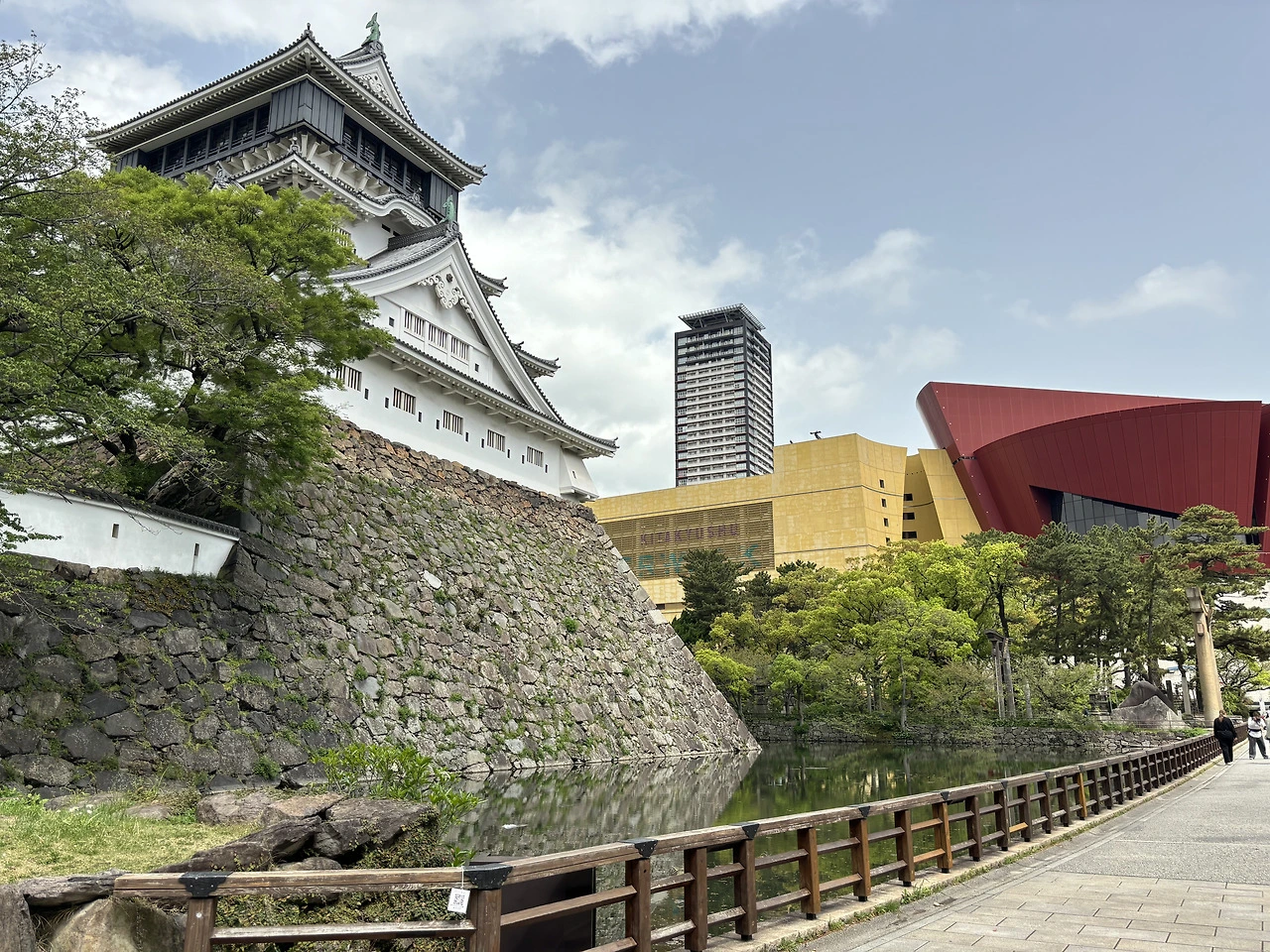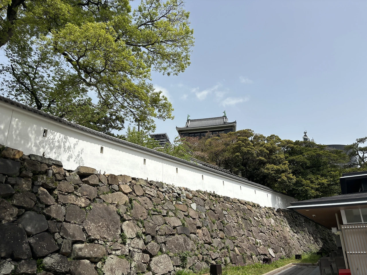 고쿠라 성에는 입장료가 있다고 들었는데, 어디서 사는지도 모르겠고 들어갈 생각도 딱히 들지 않아서 그냥 주변에서 사진만 찍었다. 그래도 충분히 예쁜 성이었다. 한국의 궁궐도 충분히 예쁘지만 일본의 궁은 또 다른 느낌이 있다. 궐보다는 성의 느낌이 물씬 나는 높이에 색감도 더 밝은 톤이다. 양식은 비슷한 것 같기도 하고.
