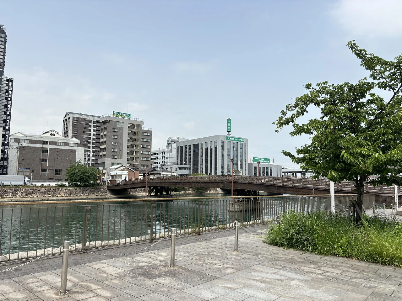 기타큐슈는 바다랑 가까운 도시다. 바닷물이 흘러들어와 도시를 가로지르는 강을 형성하고 있고, 이 강을 이어주는 다양한 테마의 다리들이 존재한다. 어떤 다리는 목조 건축물이고, 어떤 다리는 단단한 플라스틱의 질감, 어떤 다리는 강철로 만든 것처럼 생겼다. 다리 자체가 사진에서 보는 것처럼 크지 않아서 그럴 수 있었던 것인지 모르지만 이렇게 다양한 테마의 다리가 있는 것은 내 입장에서는 좋은 볼거리였다.