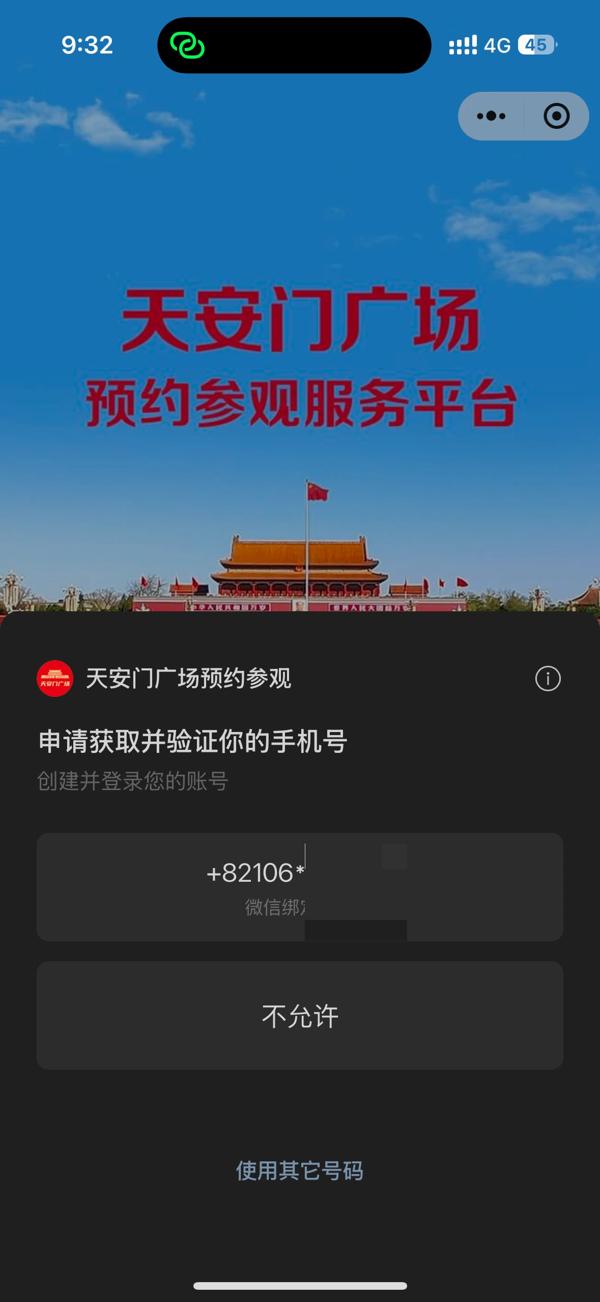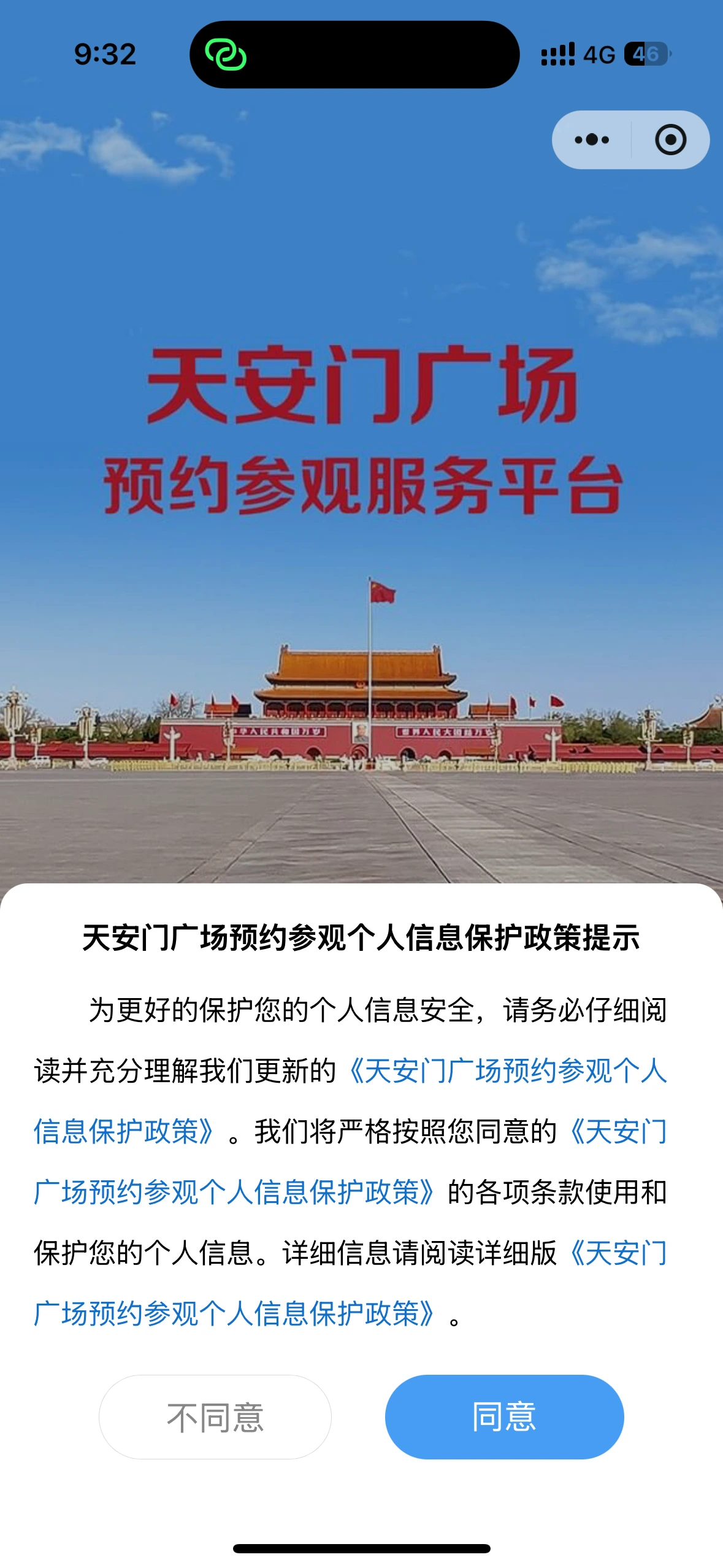 일단 천안문 광장은 항상 공안이 삼엄하게 경비하고 있어 예약이 필요하다. 예약은 돈이 들지 않으며 위챗페이로 접속해서 천안문을 검색하고 들어가면 아래와 같은 사이트가 나오는데, 여기서 같이 갈 사람들의 여권정보를 입력하면 끝이다. 워낙 큰 곳이라 딱히 제한인원이 정해져 있는 것 같진 않고, 하루 전에 예약하지 않으면 못 들어간다. 그래서 우리가 첫날 못 들어간 거다. 당일 예약은 보안 이유로 안 되는 것 같았다.
