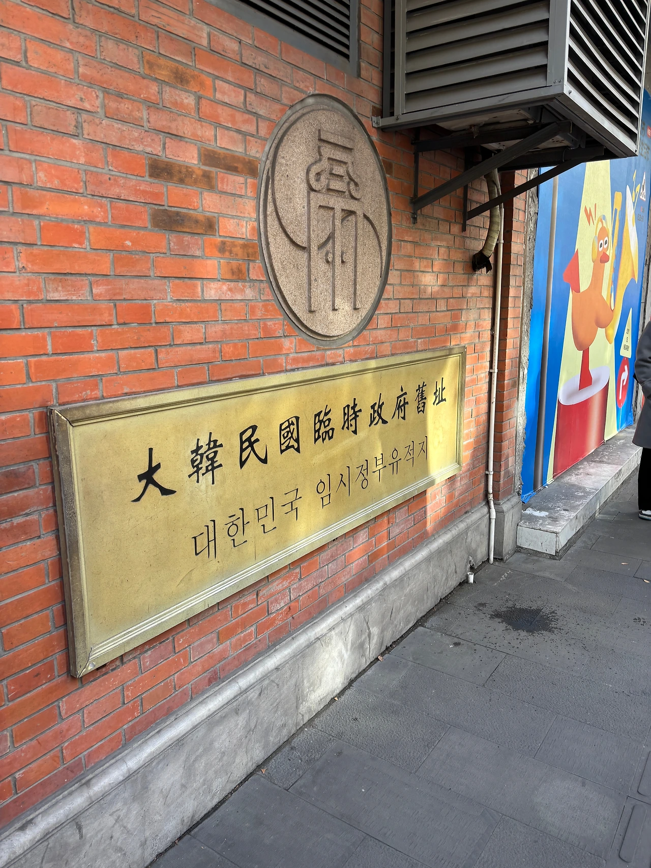 이런 표지판이나 명패가 있으면 잘 온 것이다. 영어로는 The historical site of Korean Previousal Government라고 적혀있다. 외국인들이 보면 왜 한국 정부가 중국에 있지 하고 생각했을 것 같다. Temporal이라는 단어 하니만 붙여주지..!