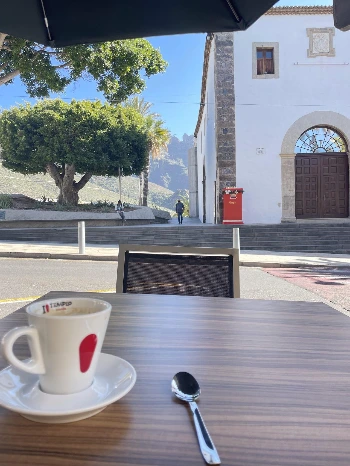 아침엔 9시쯤 일어나서 10시~11시쯤 산책을 나갑니다. 나가자마자 집 앞에 있는 카페테리아에 앉아 1시간 정도 시간을 보내요. 아침과 커피를 함께 해결하죠. 스페인에서는 사람들이 혼자 와서 풍경을 보며 가볍게 커피 한 잔 마시고 갑니다. 아래 사진을 보면 이해가 가능할 겁니다.
