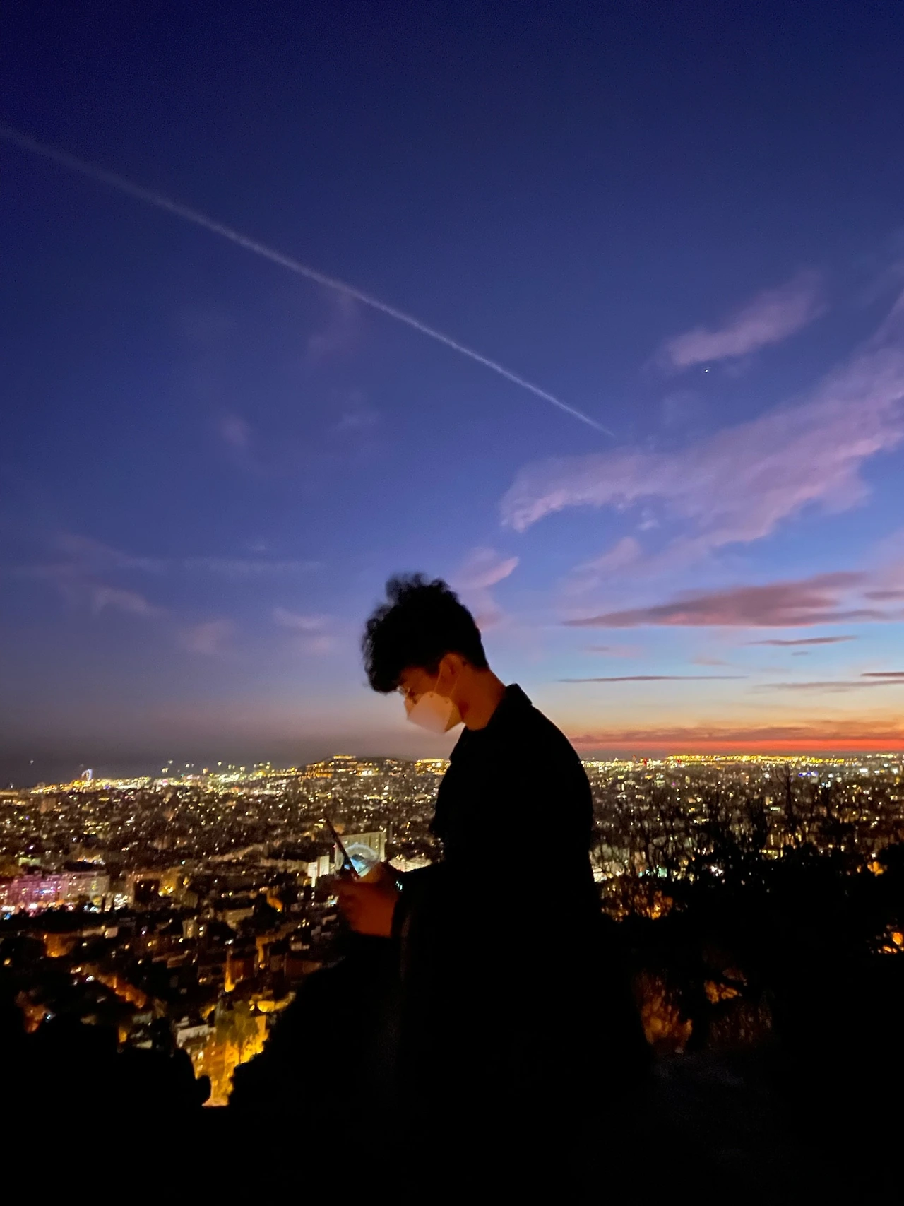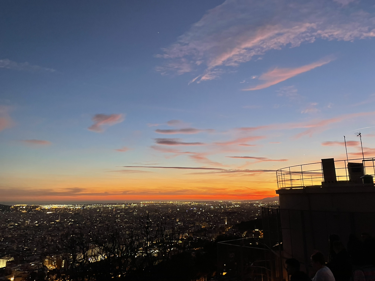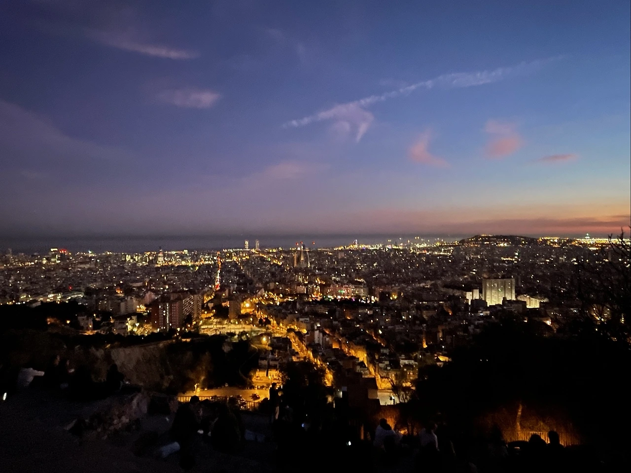 제가 이런 번쩍이는 야경을 좋아하는지도 처음 알게 되었어요. 아직 해가 다 지지는 않은 어스름한 밤인데, 아래의 그림자와 온 도시가 번쩍번쩍하게 불을 켜 두고 있고, 저 멀리 보이는 바다가 바르셀로나임을 알게 해주는 것 같았습니다.