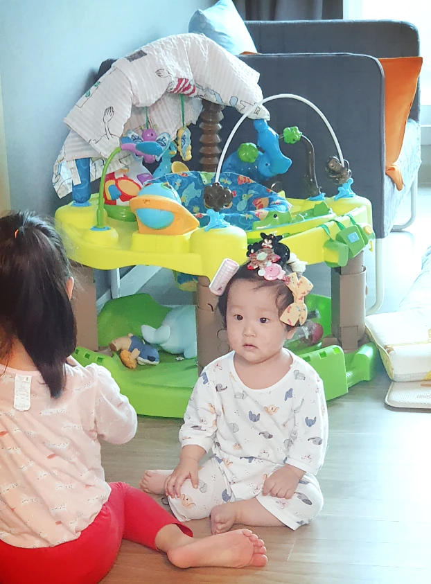 우리 큰딸은 동생의 모습에 배꼽이 빠져라 웃음이 터졌다.