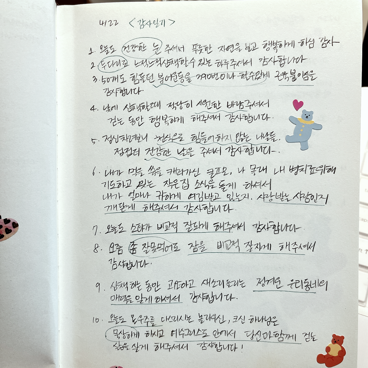 6. 요즘 잘 못 먹어도 비교적 잠을 잘 자게 해 주셔서 감사합니다.