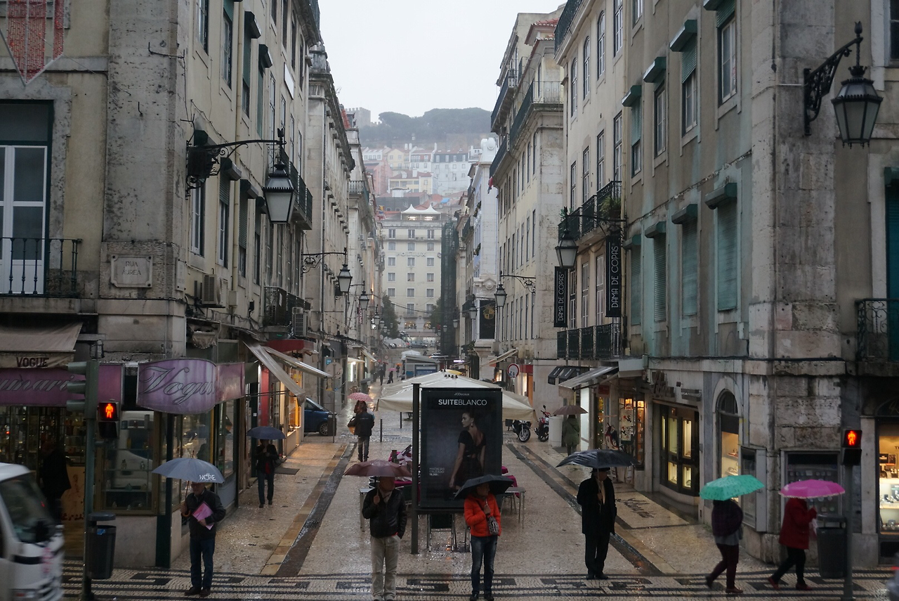 분명 리스본으로 출발하기 전까지만 해도 날씨가 좋았었지만 리스본을 가는 도중에 비가 조금씩 내리더니 도착하고 난 뒤 지하철을 타고 도심으로 들어가 내려보니 폭우가 쏟아지고 있었다. 폭우가 내리는 바람에 모든 일정을 취소를 할 수밖에 없었는데, 리스본에서는 하루만 있을 예정이다 보니 모든 것들이 꼬이기 시작했었다. 그렇다고 무리해서 다니다간 정말 온몸이 다 젖을 것만 같은 폭우였기에 역 근처에 있는 곳들만 다니거나 카페에서 시간을 보내는 방향으로 바꿨다. 내가 생각하던 리스본의 모습을 볼 수 없어서 그저 아쉬움 마음이 가장 크게 느껴졌던 거 같다. 사진을 찍으려고 잠시 발을 멈추면 신발이 다 젖어버리는 바람에 급하게 이동했었다. 물론 또 다른 매력을 찾을 수 있기도 해서 마냥 실망만 하지는 않았다. 일단 역 근처에 있는 산타 주 스타 엘리베이터로 몸을 움직였다.