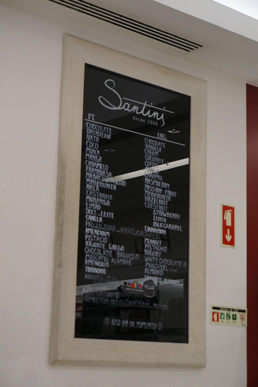 1949년부터 영업을 하고 있는 리스본 젤라토 맛집인 산티니(Santini)다. 젤라토 가격은 2~3유로가 가장 기본이며, 여러 가지 사이즈가 있다. 가게 오픈 시간은 10am이지만 성수기에 갈 때엔 줄을 서서 먹는 다고 한다. 젤라토를 먹을 땐 먼저 계산을 하고 주는 영수증을 받아 젤라토 주는 곳에 내고 먹고 싶은 맛을 선택하면 된다.