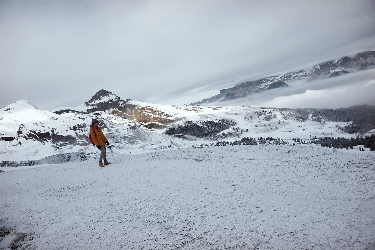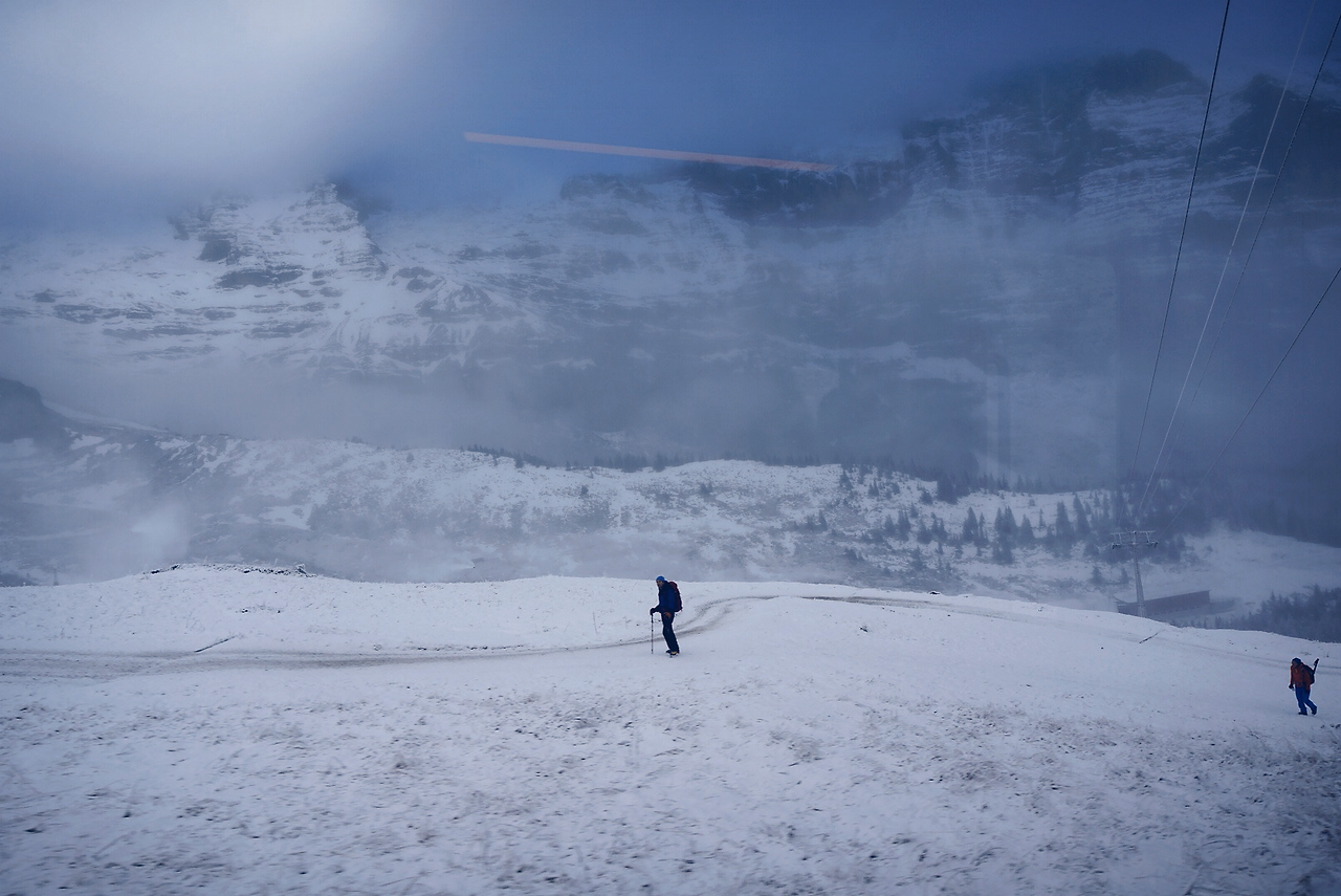 최종역인 융프라우 전망대를 가기 위해서는 이곳 클라이네 샤이데크 역에서 한번 갈아타고 가면 되는데, 나는 전망대까지 가는 기차표를 구매하지 않았기에 클라이네 샤이데크에 내려 구경을 했다. 그곳을 내린 순간 추운 건 둘째였으며, 내 눈앞이 백지처럼 하얗장면을 보여주었는데, 너무나 아름다웠다. 다만 구름이 조금 끼어있다 보니 그 점이 아쉬웠지만 그래도 너무나 아름다운 곳이었다. 융프라우 전망대까지는 못 올러가 아쉬운 마음에 그곳에서 올라갈 수 있는 곳까지 올라가 봤다. 올라가는 내내 정말 그곳은 마치 천국 같다고 해야 될 정도로 아름다웠다. 올라가면서 자그마한 호수라고 해야 되나 연못이라고 해야 되나 하나가 있었는데, 그런 곳에서 그곳을 만나니 너무 특별했었다. 올라가고 싶은 곳까지 올라가다 보니 길을 점차 개척해나갔는데, 눈이 무릎까지 올라오기도 하고 경사가 점점 기울어져 결국엔 포기를 하고 약간은 구르듯이 내려왔다. 눈썰매 타는 것처럼 너무 재미있어서 계속 이곳에 있고 싶었지만 발은 이미 얼음장같이 차가운 바람에 천천히 구경하면서 내려왔다. 구름에 가려져 융프라우를 못 보고 있었는데, 정말 잠깐 그 모습을 보이고서는 다시 모습을 감추었다. 또한 구름이 위아래에만 있어 가운데만 뚫려있는 장관을 볼 수 있었다.