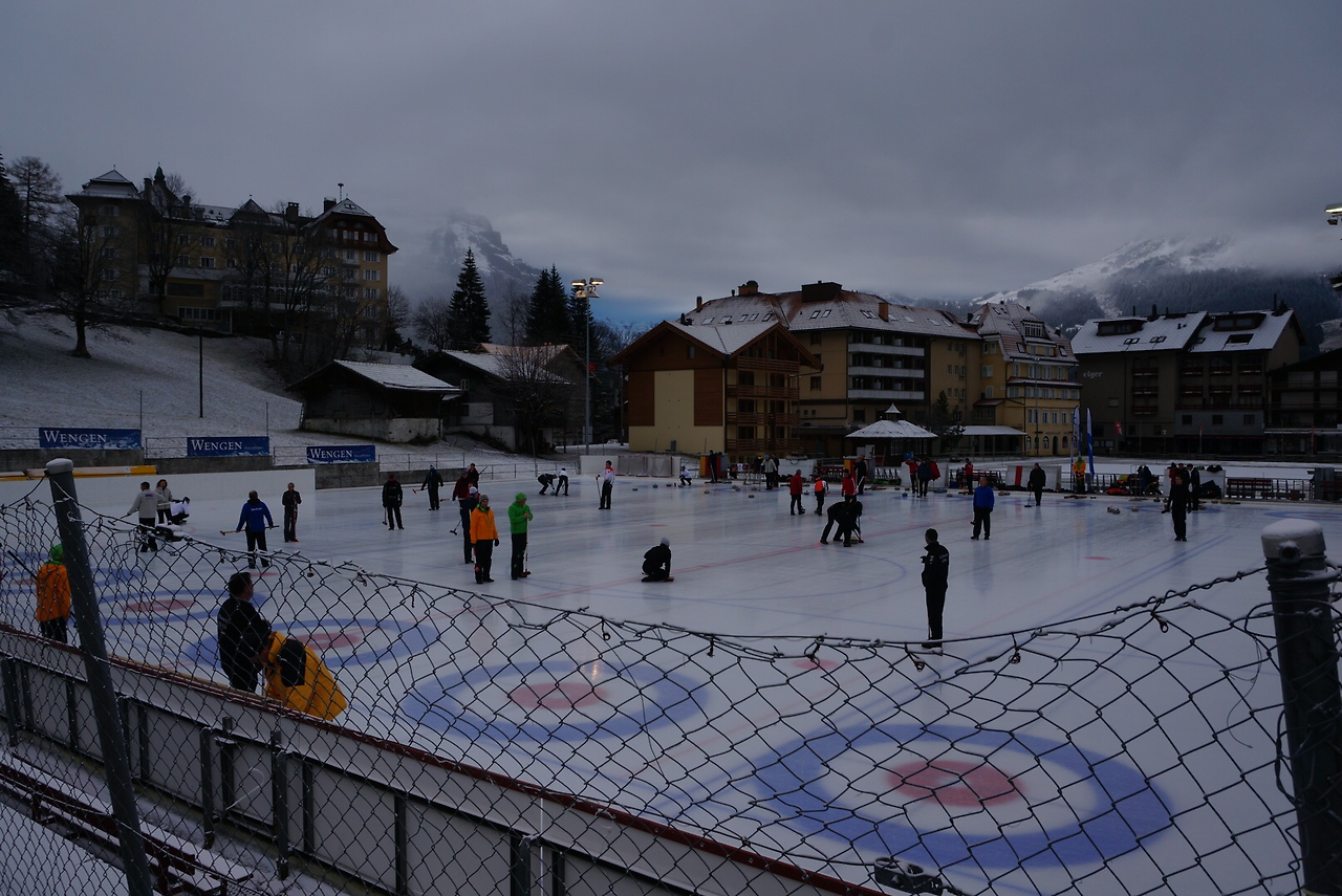 융프라우 올라가는 기차의 티켓이 있으면 모든 구간에 내려서 구경하고 다시 타도 괜찮기에 첫 번째로는 그린델발트에 내려서 잠시 동안 구경을 했다. 모든 구간의 마을이 높이 있기 때문에 어떨지 굉장히 궁금했는데, 내리자마자 너무 상쾌한 공기와 멋진 풍경들이 내 눈앞에 나타났었다. 겨울의 풍경이 었기에 푸릇푸릇한 느낌은 없었지만 겨울의 스위스는 무언가 웅장한 느낌을 주는 듯한 느낌을 받았다. 신기하게도 컬링 경기장이 야외에 설치되어있어서 많이 신기했었다. 보통 우리나라는 덥기때문에 실내에만 있겠지만 야외에 있다 보니 경기도 재밌지만 풍경도 같이 볼 수 있는 장점이 있는 것 같았다. 그리고 많은 사람들이 컬링을 즐기고 있는 것을 보고 너무나 부러웠다. 잠깐 둘러보고 다시 기차를 타고 올라갔다.