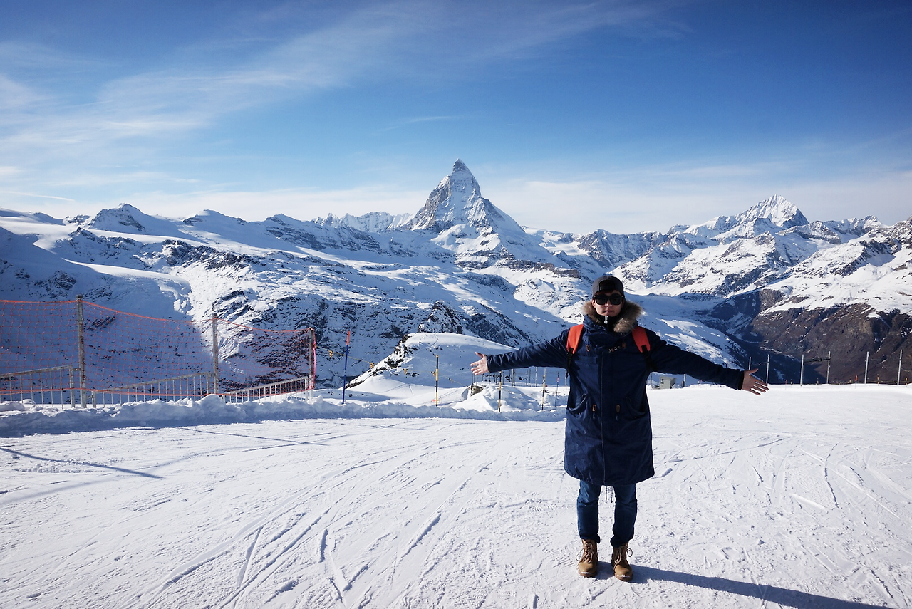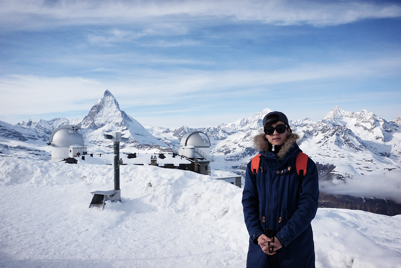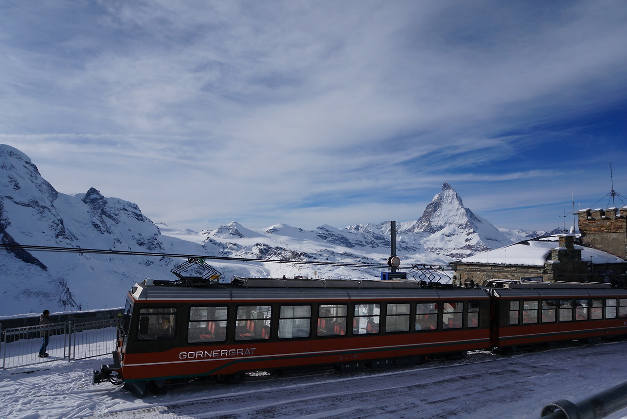 산악열차를 오르는 동안 바라보는 스위스 전경들은 정말 잊을 수가 없었다. 희한하게도 구름 위에는 모든 곳들이 눈으로 덮여있었지만 구름 밑으로는 눈을 찾기가 힘들었다. 그 장면을 보고 있으니 너무 신기했었고 점점 올라갈수록 눈이 많아지는걸 느낄 수 있었다. 그리고 열차를 탈 때 스키나 보드 장비들을 싣고 올라가는 사람들을 볼 수 있는데 정상에 올라가서 내려오는 코스가 정말 잘 돼있었다. 물론 나도 타보고 싶은 생각이 컸었지만 그래도 이곳에 올라가는 것에 만족을 했다. 고르너그라트에 올라가서 점심을 먹으려고 싸간 김밥과 구워서 가져온 소시지와 전망대에 있는 식당에서 커피 한잔만 사서 같이 먹었는데, 그 맛은 정말 잊을 수 없을 것 같다. 먹으면서 바라본 풍경은 정말 내 인생 최고의 맛이 아니었을까 싶다. 해발 3100M에 올라간 것이 처음이라 그저 신기했었다. 고도가 높다 보니 공기가 적어 숨이 찼는데, 오래 있으면 고산병이 올 것만 같았다. 가만히 서서 마테호른을 보기도 하고 식당 테라스에 앉아서 보기도 하고 360도 다 둘러볼 수 있는 곳에 올라가서 보기도 했는데, 정말 너무나 멋있었다. 마음 같아서는 오래 있고 싶었지만 다음 일정도 있고 슬슬 고산병이 오는 것 같아 내려갔는데, 가는 도중에 피곤함이 몰려와 깊은 잠을 자면서 내려왔다.