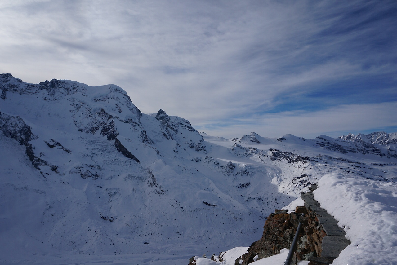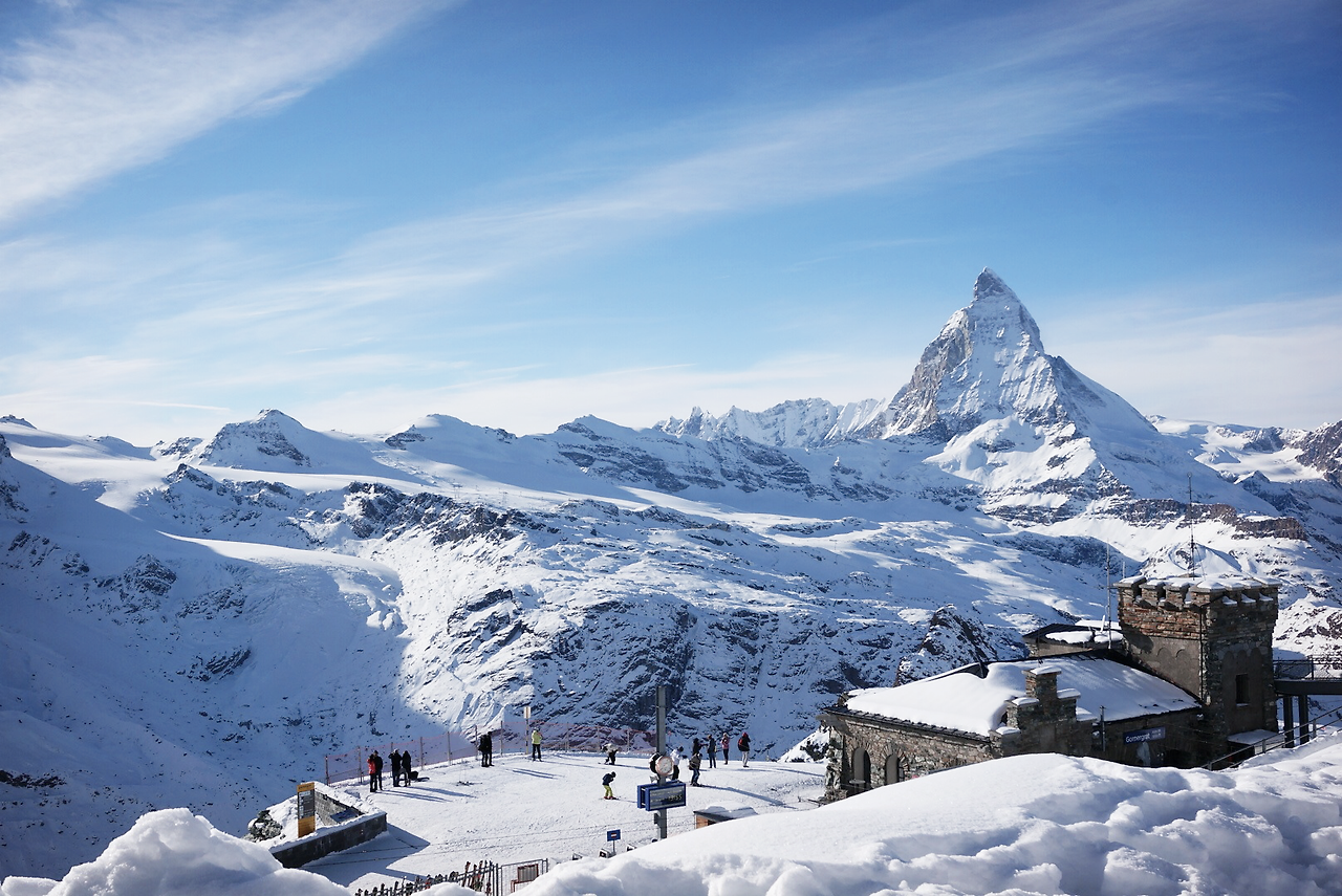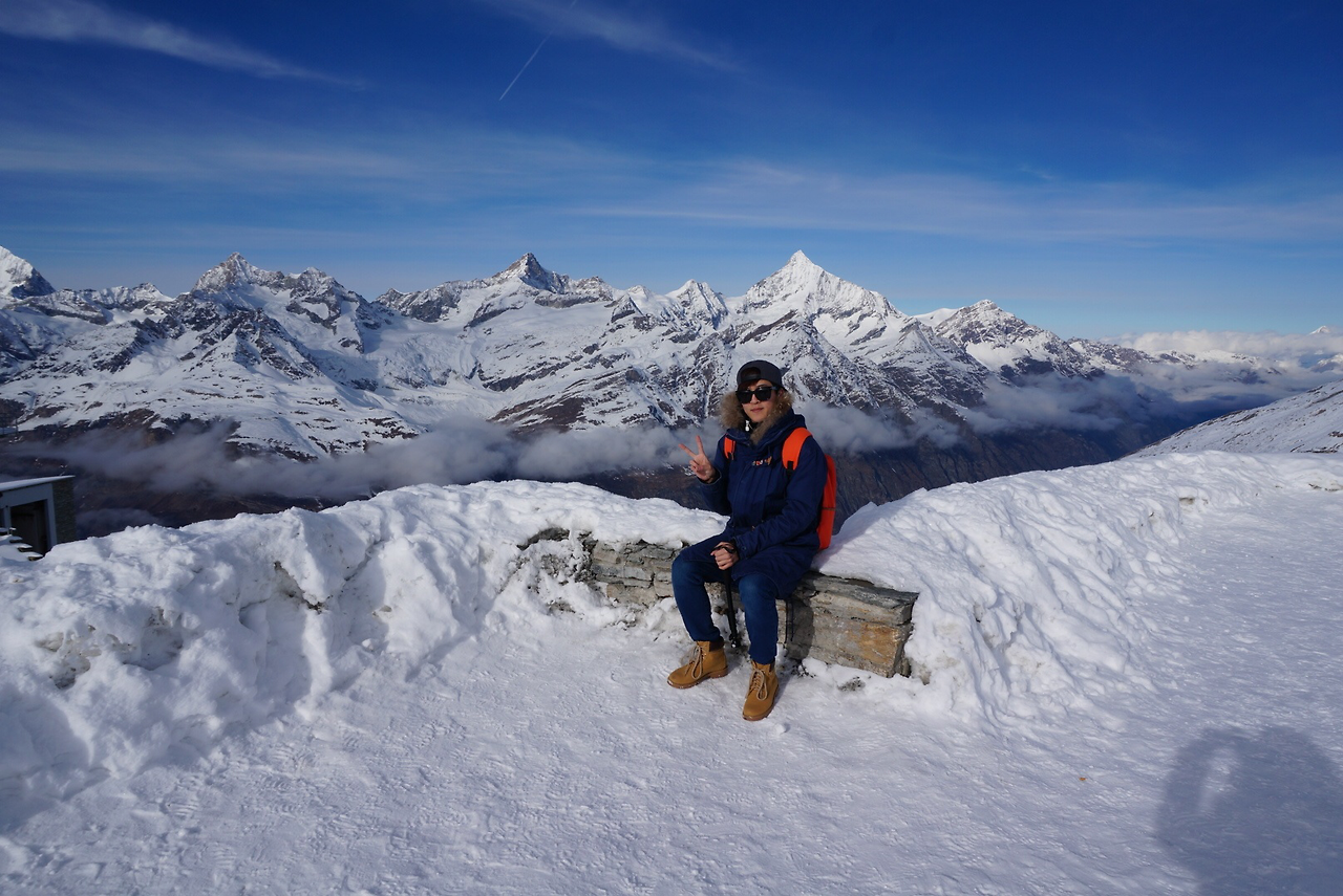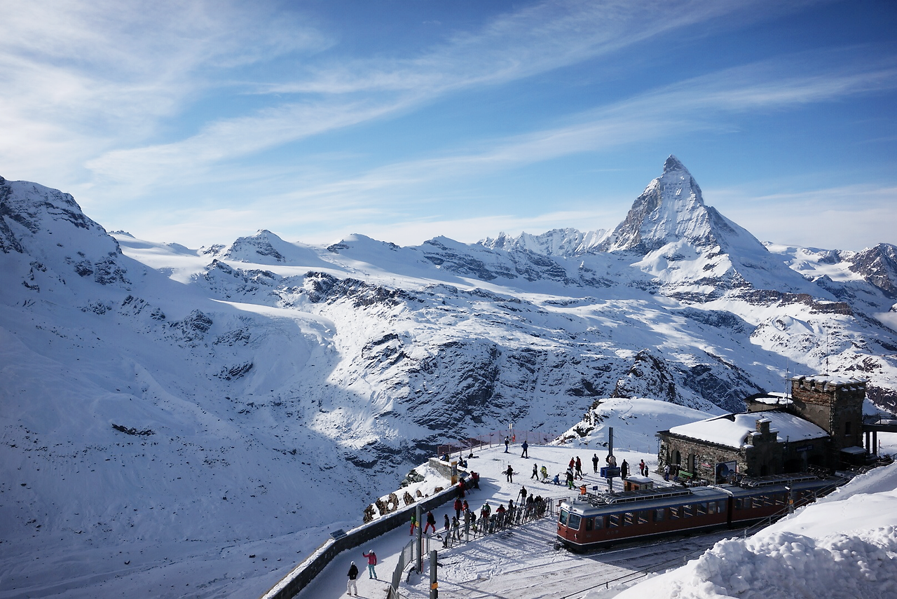 산악열차를 오르는 동안 바라보는 스위스 전경들은 정말 잊을 수가 없었다. 희한하게도 구름 위에는 모든 곳들이 눈으로 덮여있었지만 구름 밑으로는 눈을 찾기가 힘들었다. 그 장면을 보고 있으니 너무 신기했었고 점점 올라갈수록 눈이 많아지는걸 느낄 수 있었다. 그리고 열차를 탈 때 스키나 보드 장비들을 싣고 올라가는 사람들을 볼 수 있는데 정상에 올라가서 내려오는 코스가 정말 잘 돼있었다. 물론 나도 타보고 싶은 생각이 컸었지만 그래도 이곳에 올라가는 것에 만족을 했다. 고르너그라트에 올라가서 점심을 먹으려고 싸간 김밥과 구워서 가져온 소시지와 전망대에 있는 식당에서 커피 한잔만 사서 같이 먹었는데, 그 맛은 정말 잊을 수 없을 것 같다. 먹으면서 바라본 풍경은 정말 내 인생 최고의 맛이 아니었을까 싶다. 해발 3100M에 올라간 것이 처음이라 그저 신기했었다. 고도가 높다 보니 공기가 적어 숨이 찼는데, 오래 있으면 고산병이 올 것만 같았다. 가만히 서서 마테호른을 보기도 하고 식당 테라스에 앉아서 보기도 하고 360도 다 둘러볼 수 있는 곳에 올라가서 보기도 했는데, 정말 너무나 멋있었다. 마음 같아서는 오래 있고 싶었지만 다음 일정도 있고 슬슬 고산병이 오는 것 같아 내려갔는데, 가는 도중에 피곤함이 몰려와 깊은 잠을 자면서 내려왔다.