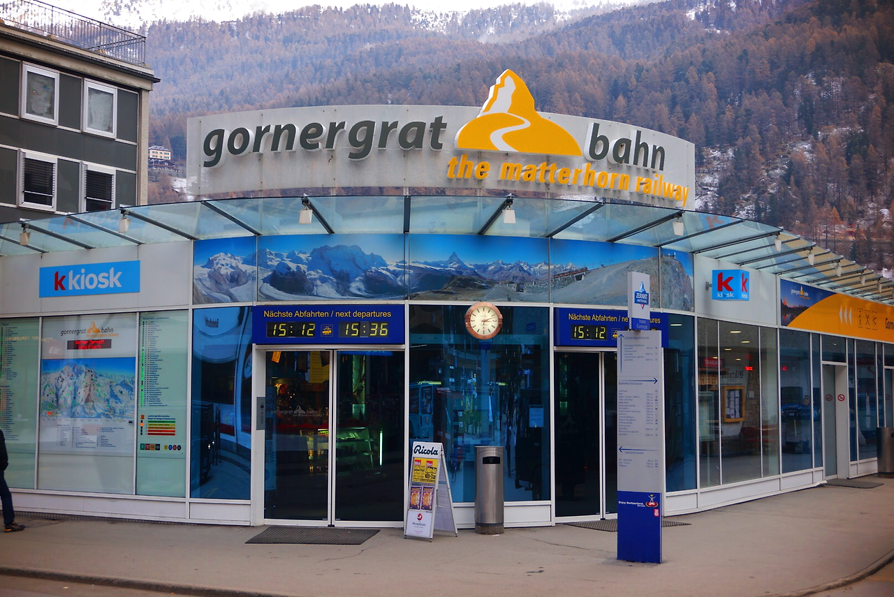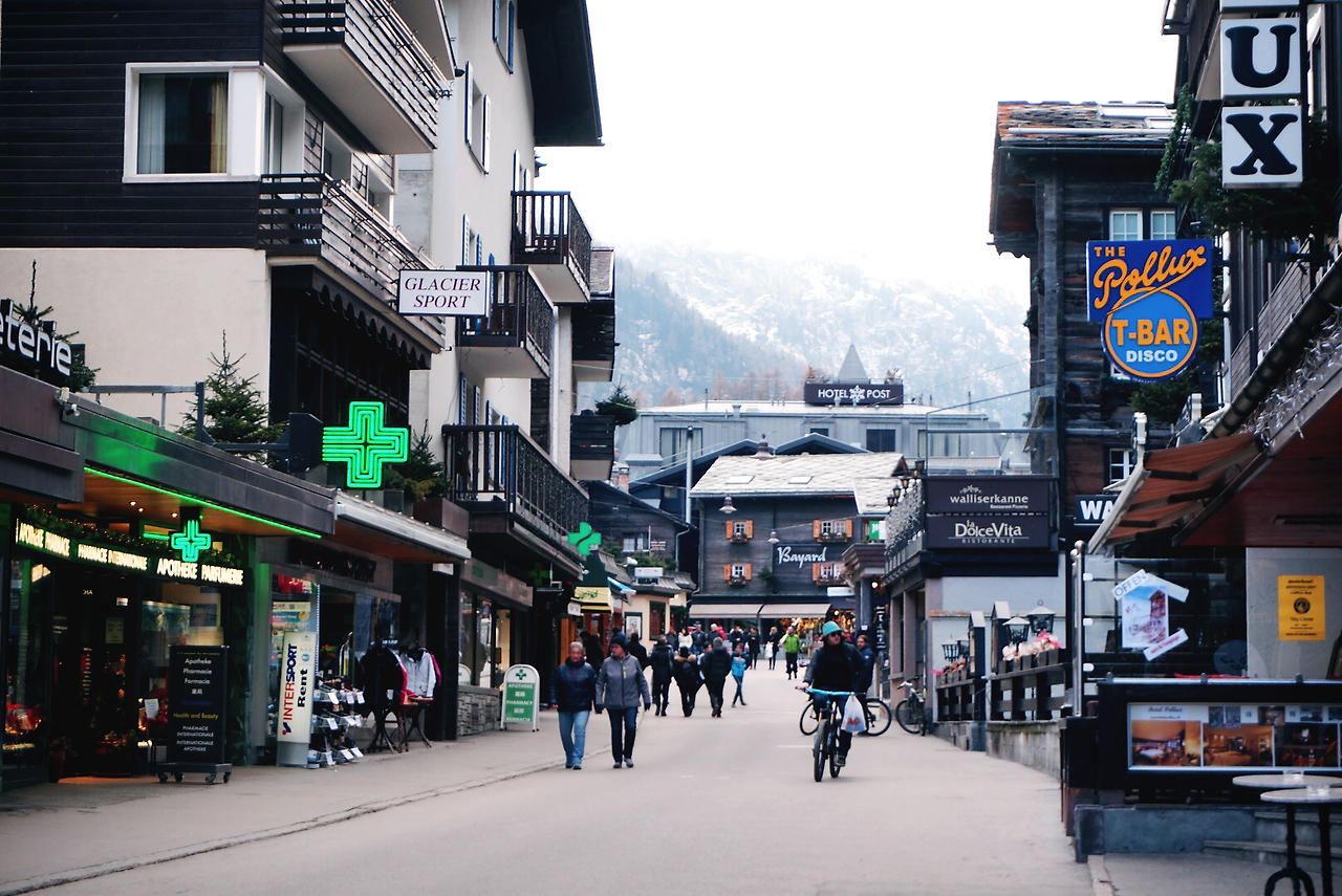 마지막 날에 잠시 들린 곳이 었지만 이곳에서 숙박을 한 번은 해보고 싶은 생각이 들 정도로 좋은 곳이었다. 먼저 마테호른 전망대인 고르너그라트 티켓을 먼저 구입을 하고 시간 확인 후 잠시 돌아다녔다. 산악열차 티켓은 유레일패스보다는 스위스 패스 소지시 할인율이 높지만 스위스 패스가 없어 유레일패스 할인을 받고 이용을 했다. 시간이 정해져 있으니 체르마트를 잠시 머물게 될 경우 차 시간은 필수로 확인하고 움직여야 된다. 체르마트에 가면 스키나 보드 타는 사람들이 많이 모여있기 때문에 많은 상점들이랑 택시들을 볼 수 있다. 호텔들도 많은데 대부분이 상점이랑 연결되어있는 것 같았다. 그렇게 잠시 구경을 하고 산악열차를 타러 갔다.