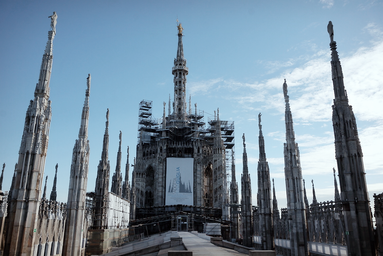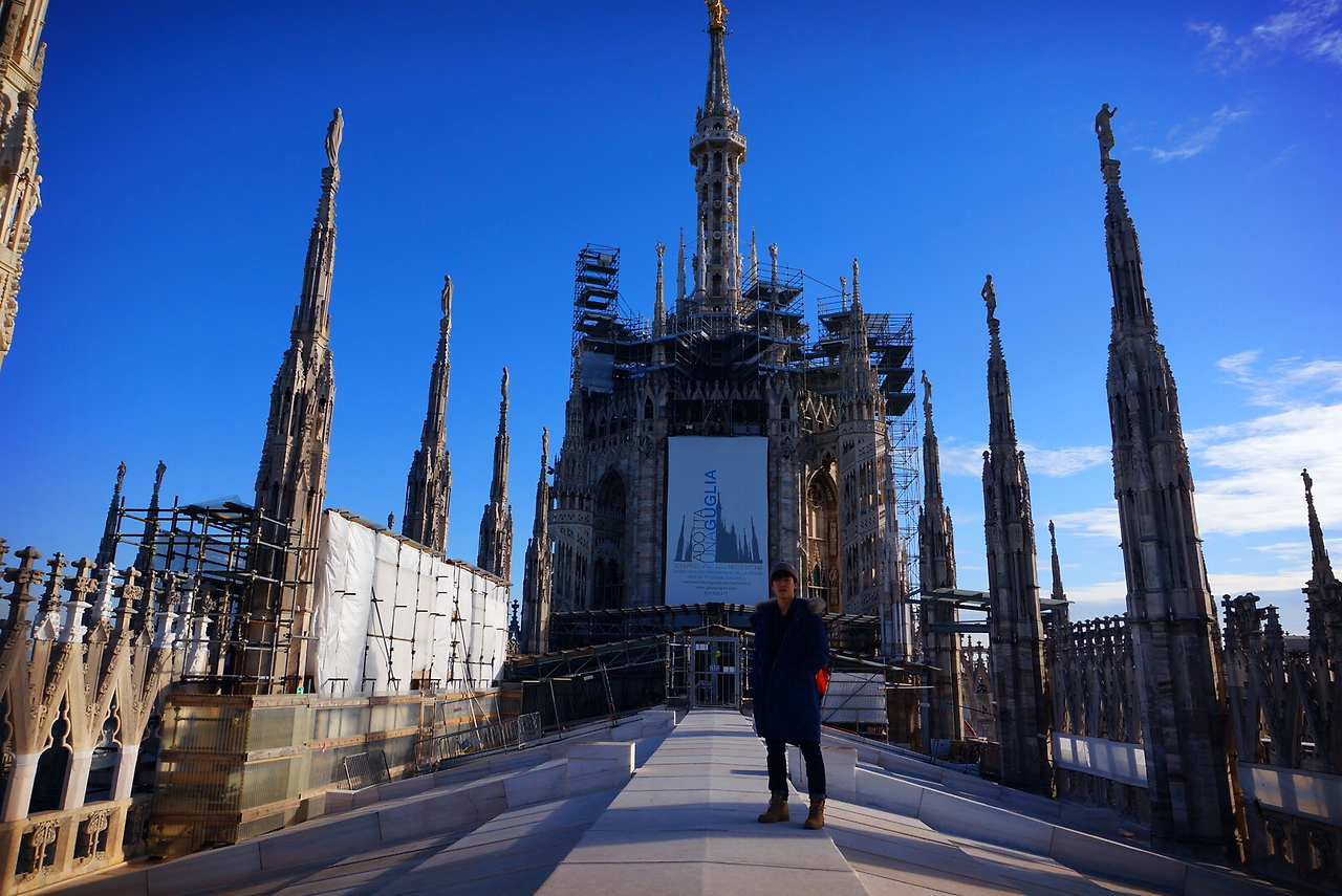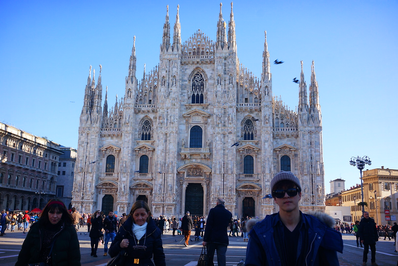 들어가기전 옷과 소지품 검사를 먼저 하고 들어갔다. 거대한 성당인 만큼 내부안도 그만큼 멋있는 장면을 보여주는데, 한바퀴 구경하는 것도 시간이 조금 걸렸다. 하지만 사람들이 많이 다녀서 그런지 한부분은 수리를 하기도 했다. 또한 어느 시간대가 되면 미사를 들이기도 하니 알아보고 가서 같이 하는 것도 좋을 것 같은 생각이 들었다. 1층 내부를 다 둘러보고 나서 옥상으로 올라가 구경을 했는데, 정말 멋있는 장면을 보여주었다. 건물들이 대부분 보이는 모습이지만 전체적인 밀라노 모습을 보여주는 곳인것 같았다. 올라가면 조각상들도 상당히 많은데 그것 또한 너무 대단한 조각품들인 것 같았다. 항상 그렇듯이 올라가서 아래를 보거나 멀리 바라보는 것은 정말 행복한 일인 것 같다. 대성당 구경을 다하고 나와 광장을 잠시 둘러보는데, 그때 한가지 일이 발생했다. 어느 흑인이 나에게와 갑자기 팔에 강제로 팔찌를 차는 것이었는데, 풀수도 없고 갑작스러워 뿌리치지도 못했다. 결국엔 돈을 달라고 하지만 다행히도 돈 없다고 하면서 도망치듯 가니 포기하고 갔다. 처음에는 당황스럽고 놀랐는데, 약간은 무섭다는 생각도 들었다. 그러고나서 광장을 가기가 꺼려졌는데, 그 이유 중 하나는 그 사건도 있지만 광장에는 많은 흑인들이 그런 행위들을 하고 있었다. 그래서 사진 몇장만 찍고 바로 움직였다.