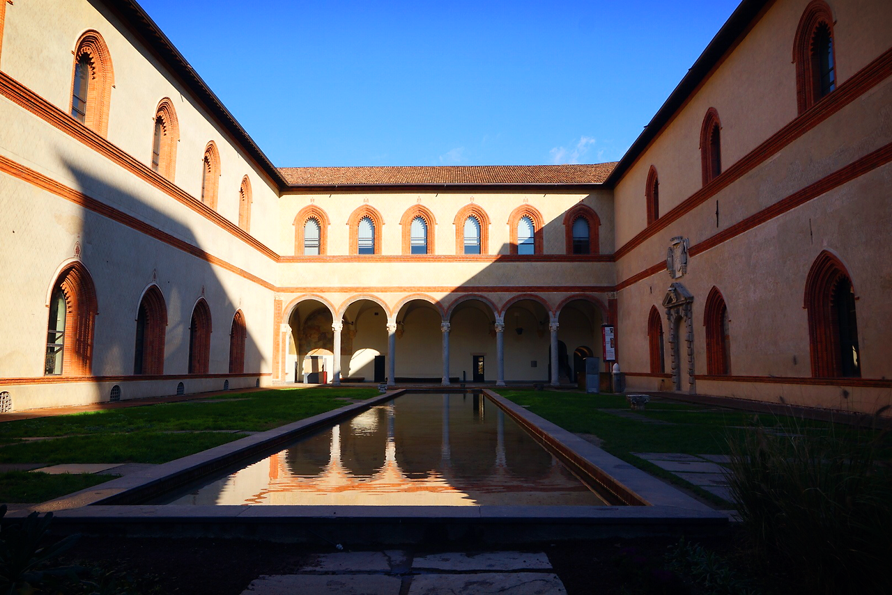 이 스포르체스코성은 비스콘티 가문의 소유이며, 중세시대에 지어진 방어 요새이다. 또한 제 2차 세계대전때 폭격을 받아 무너졌다가 다시 세웠다고 한다. 그리고 고미술박물관이 안에 위치해 있어 많은 사람들이 찾는다. 예전에는 무료로 개방을 했지만 현재는 유로로 운영을 하고 있다. 물론 성 안쪽만 들어가는 무료니 꼭 가보는 것이 좋다.