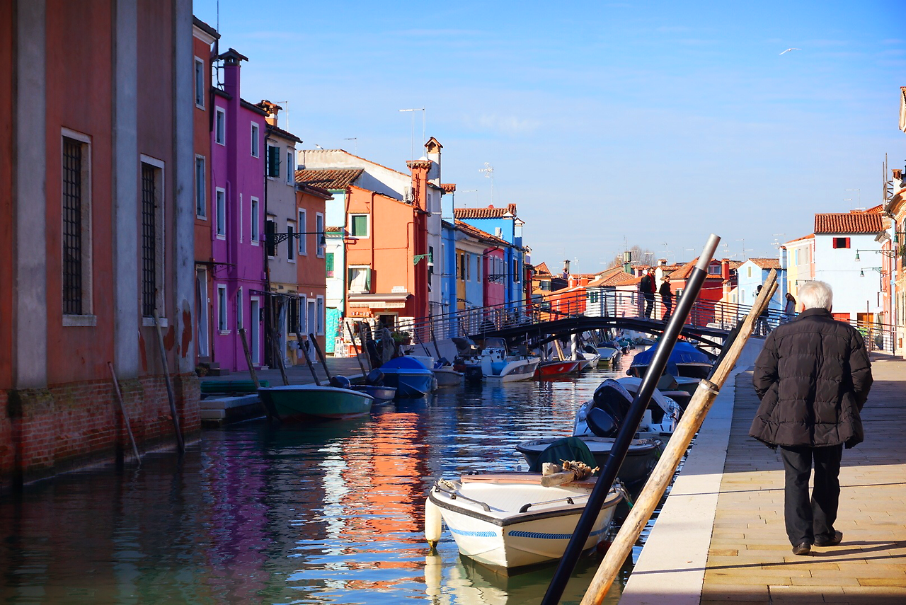 최근에 아이유의 뮤비 촬영지로 많이 유명세를 타다보니 대부분 관광객들이 한국인이었다. 하지만 나는 가기전까지도 모르고있다가 다른 분들이 말해줘서 알게됬었다. 그래도 비수기때다보니 사람들이 많이 없어서 둘러보기 좋았다. 최대한 중심지에서 멀리 떨어질려고 외곽쪽으로 많이 걸어갔다. 그쪽으로 가니 정말 조용한 마을 풍경이었는데, 너무 아름다웠다. 부라노섬의 건물들은 어부들이 본인의 집을 잘 찾을수 있게 하기위해 색을 칠했다고 하는데, 그랬던 것들이 점차 많아 지다보니 아름다운 마을을 형성한것 같았다. 그러다보니 많은 사람들이 이곳에서 인생샷을 많이 남길려고 하는데, 나는 풍경을 찍으라 내 사진 찍는걸 까먹었었다. 그래도 괜찮은 사진들을 많이 찍은 것 같아서 기분이 좋았었다. 그렇게 시간이 조금 흐르고 본섬인 베니스로 돌아갔다.