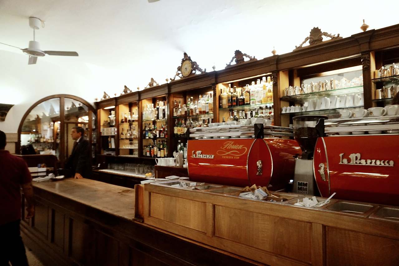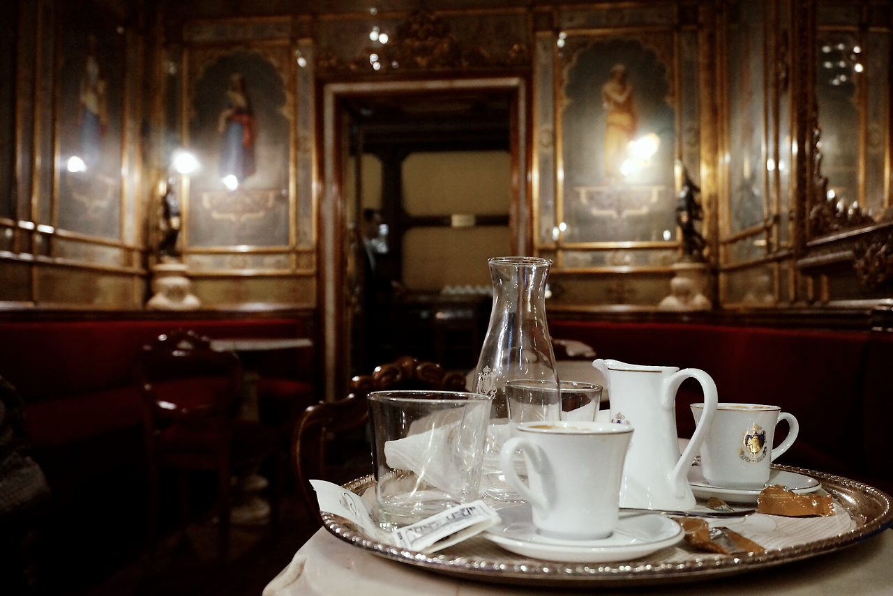 워낙 비싸기로 유명한 곳이긴 했지만 그래도 이곳을 한번 가보고 싶은 마음에 일단 자리에 앉아서 그중 가장 저렴한 에스프레소를 주문했다. 이탈리아에서는 테이블차지가 있다 보니 바에서 먹거나 서서 먹지 않는 이상 돈이 추가되는 것을 알고 있어야 한다. 그렇기에 메뉴판 또한 따로 준비가 되어있다. 또한 야외 테이블이 있는 곳에서는 야외 테이블이 가장 비싼 자리라고 보면 되는데 상당한 금액이 붙기에 에스프레소를 먹어도 조금은 놀랄 가격이 나오니 참고하면 될 것 같다. 원래 이곳은 가장 비싼 카페보다는 이탈리아에서 가장 오래된 카페 또는 가장 아름다운 카페 중 한 곳으로 뽑히기도 했었다. 그렇기에 카페 안을 들여다보면 왜 그런지 이해가 갈 수 있었다. 고급스러운 분위기에 좋은 작품들이 있어 나도 모르게 저절로 품격이 있어지는 듯한 느낌이었다. 카페 맛은 큰 인상을 주는 곳은 아니었지만 그 분위기가 좋아서 즐기기에는 너무 좋았다. 다만 단체관광객들이 먹으려고 들어온 것이 아닌 사진 찍으려고 들어오다 보니 많이 어수선한 부분도 있었다. 이곳의 커피 맛은 월등히 좋다고는 못하겠지만 카페의 분위기가 있어 경험해볼 만한 곳이라고 생각하는 곳 중 한 곳이다.