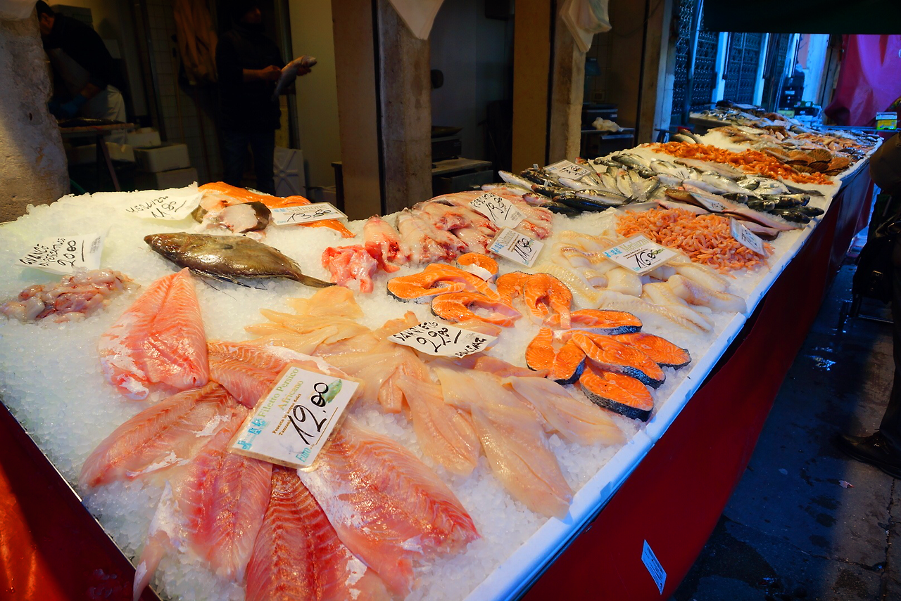 베니스는 모든 곳이 바다로 둘러싸여 있다 보니 가장 궁금했던 것들이 해산물이다 보니 가장 궁금했던 수산시장 모습이었다. 다만 그렇게 큰 도시가 아니다 보니 시장은 조그마하였지만 그래도 한국에서 보지 못하는 생선들이 많아 재밌는 경험이었던 것 같다. 어딜 가나 시장 모습을 보는 것이 조금은 행복한 시간이 되는 것 같다. 가장 그 나라의 현지 모습을 볼 수 있는 풍경들이다 보니 나도 모르게 웃게 되는 것 같았다. 물론 가끔 호객행위를 하기도 하지만 우리나라에 비하면 아니다 보니 좋은 것 같다.