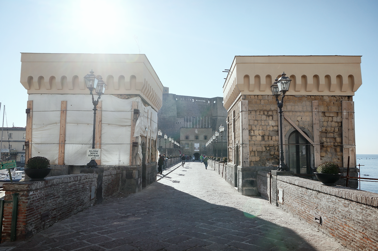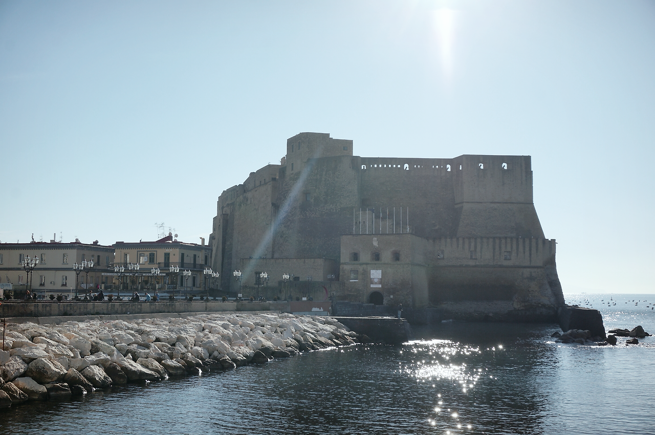 이동수단 몇개가 파업으로 인해 안되다보니 걸어서 가기로 마음을 먹고 바로 시내로 들어가지 않고 바닷가쪽으로 쭈욱 한바퀴를 돌았다. 나폴리의 겨울 낮은 조금은 따뜻하게 느껴져 걸어다니기 딱 좋은 날씨였다. 이탈리아 남부지방으로 내려갈수록 겨울이여도 낮에는 따뜻해서 여행하는데에는 큰 문제가 없어보였다. 바닷가를 지나는 도중 카스텔델로보가 보여 들어가서 구경을 했다. 커다란 성이고 옥상까지 올라가서 나폴리를 구경할수 있다. 입장료가 무료이니 한번 들어가서 구경해볼만한 것 같았다. 바다근처에 있으니 산책하면서 잠시 들리면 된다. 그리고 그 곳을 쭈욱 따라가다보면 큰 공원이 나오는데 너무나 넓기에 그곳은 넘어갔다. 그다음에는 플레비시토광장을 지나 시내로 들어갔다.
