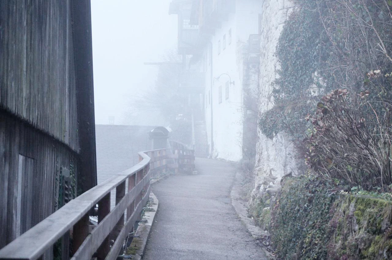 아침에 산책겸 걸어다닐려고 하는데, 베란다로 나가는 순간 자욱한 안개들이 나를 반겨주었다. 앞이 하나도 보이지 않는 정도의 안개가 있어서 처음에는 망했다라는 생각이 들었었지만 그 안개들을 계속해서 보고 있으니 오히려 좋은 경험을 주는 것 같았다. 오히려 할슈타트가 조금더 신비로운 곳으로 바뀌었다. 걸으면 걸을수록 안개속을 걷는 느낌이었으며, 오히려 앞이 보이지않으니 더 궁금하게 만들어 주었다. 그렇게 간단하게 산책을 끝내고 숙소로 돌아왔다.