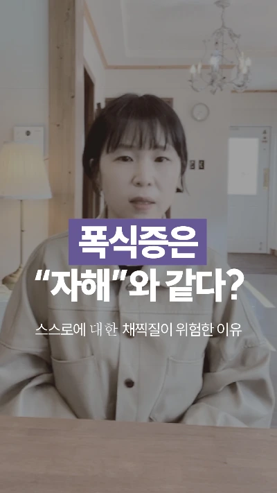 폭식증은 자신을 채찍질하는 행위 때문에 생겨요. 먹을 가치없는 자신에게 벌을 주는거죠. 뚱뚱하니까 먹지마, 공부 못하니까 먹지마, 취업 못하니까 살이라도 빼야하니 먹지마 해요. 참다참은 몸은 호르몬이 폭발해서 폭식을 유도하는 거예요. 먹을 것을 탐닉하고 못참아서가 아니예요.