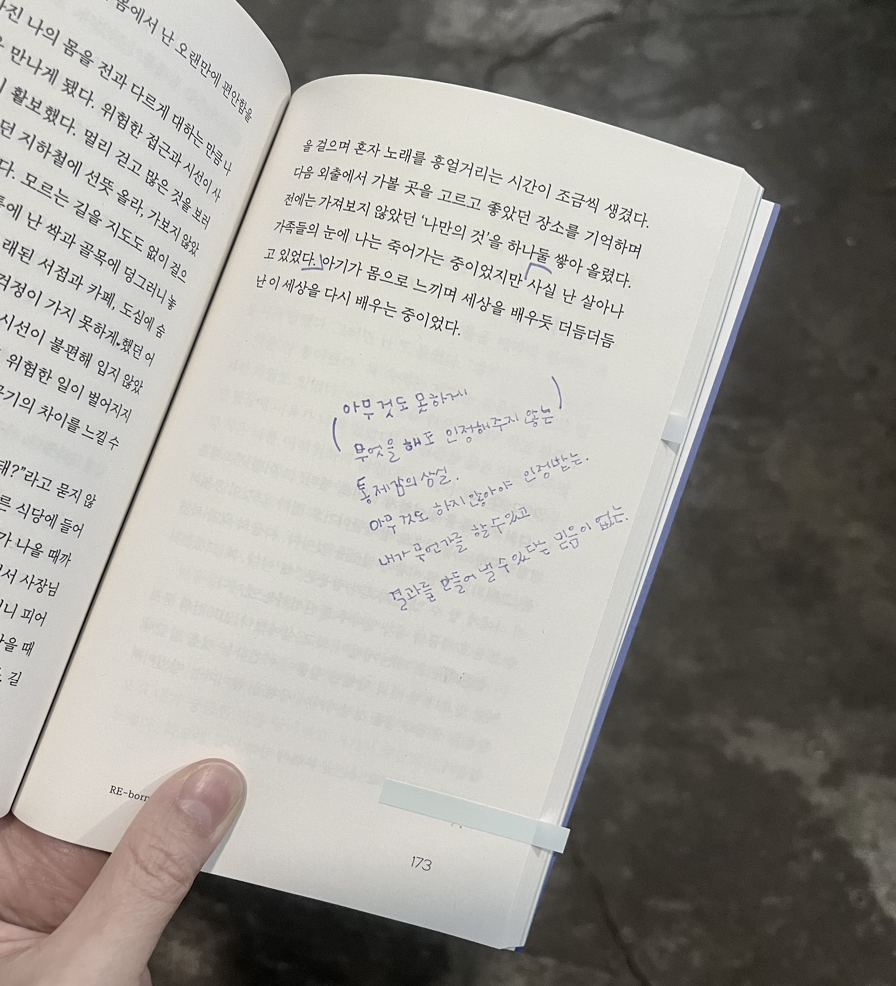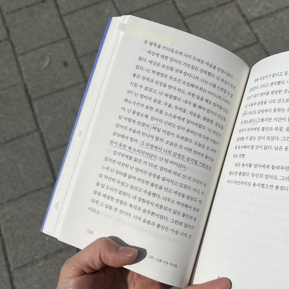 책을 읽는 동안 섭식장애 속에서 가라앉아 있었던 우울함과, 무거움으로 다시 빨려들어가는 것 같았다. 섭식장애의 인과관계를 눈에 그리듯 볼 수 있었음에도, 책을 덮고 일어서며 남는 이 무겁고 불편한 여운은 무엇일까 궁금하게 만들었다.