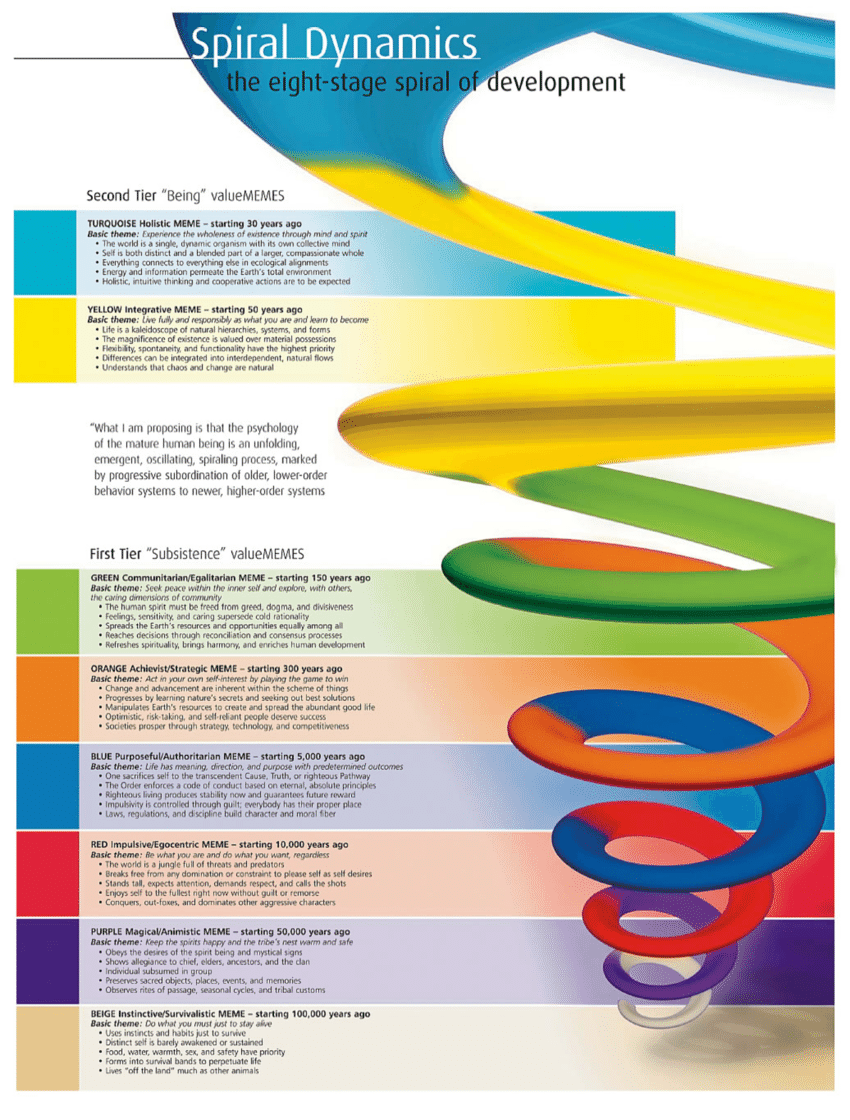 자아실현의 일반화에 대한 고민을 하려다가 발견한 것이 이 매슬로우의 욕구위계론을 발전시킨 새로운 이론, Spiral Dynamics (나선역학)이다. 아직까지 국내에 번역된 도서조차 없다. 유튜브에서 민병은 대표님이 설명하시는 강의가 있기는 하다. (한국말이 약간 서투르셔서 성격 급한 나는 듣기가 좀 어렵긴 했다.)