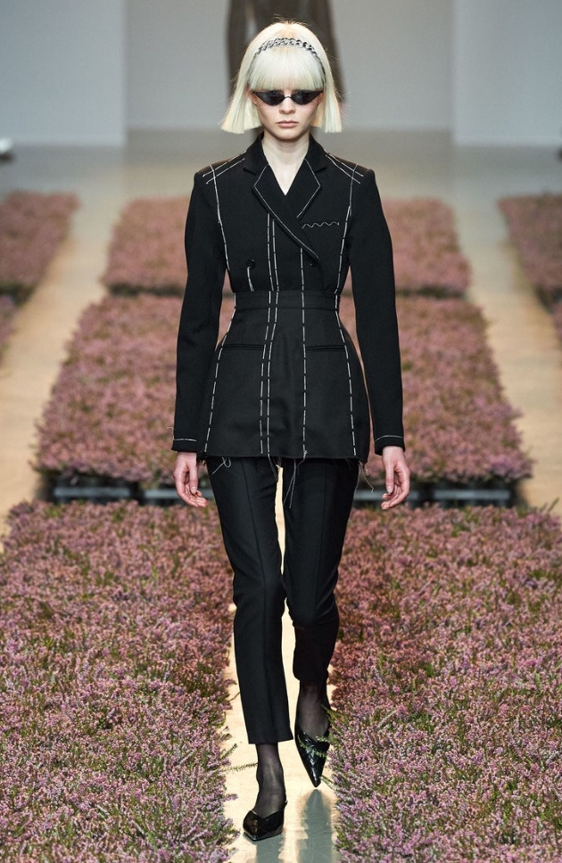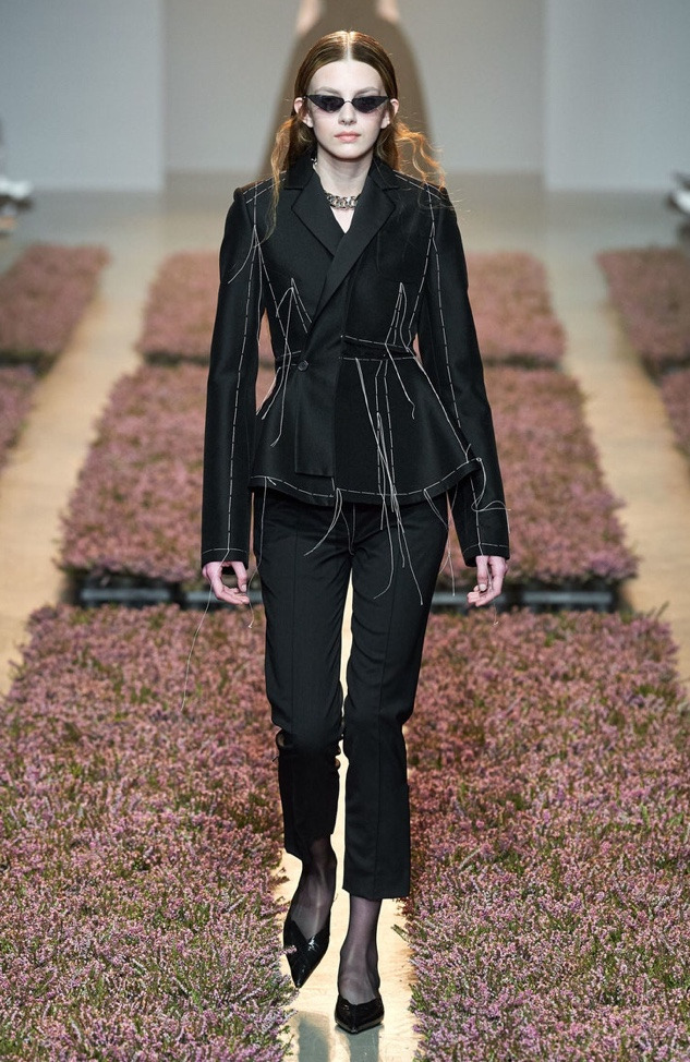 이번 쇼에서 스티치 디테일은 마르지엘라를 떠오르게 하지만 그의 해체는 과감하며 해체된 옷은 입고 싶게끔 디자인되었다.