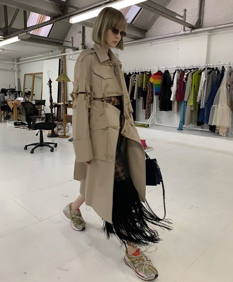 해체적인 디테일이 많이 들어가 있지만 입을 수 있는 웨어러블 한 옷을 만드는 것이 특징이다.