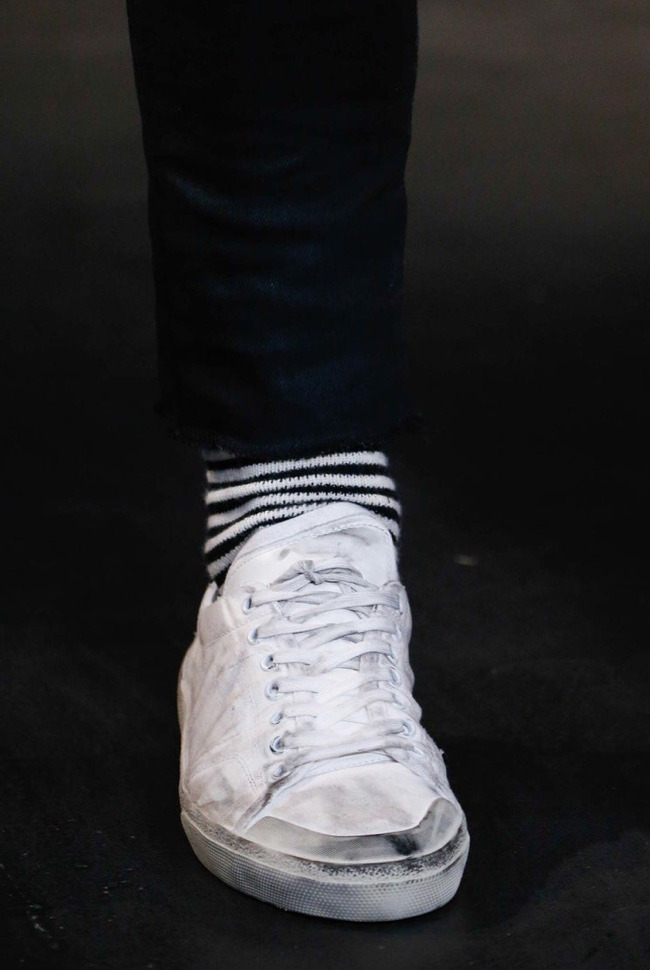 또한 평소 에디 슬리먼이 보여주었던 40mm 부츠들이 아닌 카프 소재의 서프 스니커즈를 선보임으로써 날 선 시크함 보다는 해변에서 기타를 치며 놀고 있는 자유로운 락스타의 모습을 보여주었다.