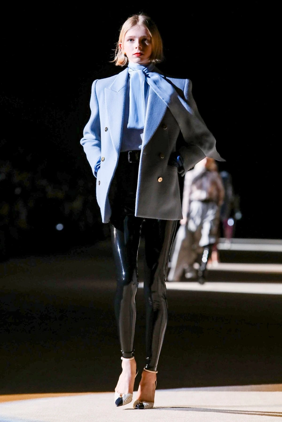 20FW 생로랑은 현 트렌드의 대표 격인 클래식 무드에 파격적인 소재인 라텍스를 사용하여 다른 브 랜드와의 차별점을 두었다는 점에서 주목할 만하다.