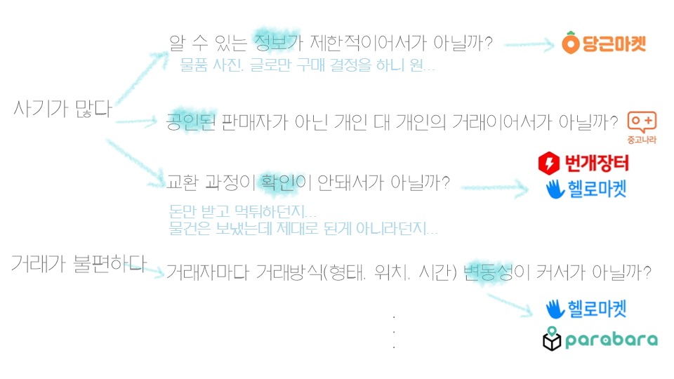 파라바라는 헬로마켓과 마찬가지로 중고거래가 불편한 원인(=문제점)을
