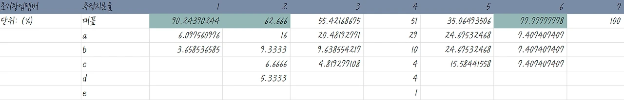 에 따라 각각의 팀원의 지분율이 높은 편임.