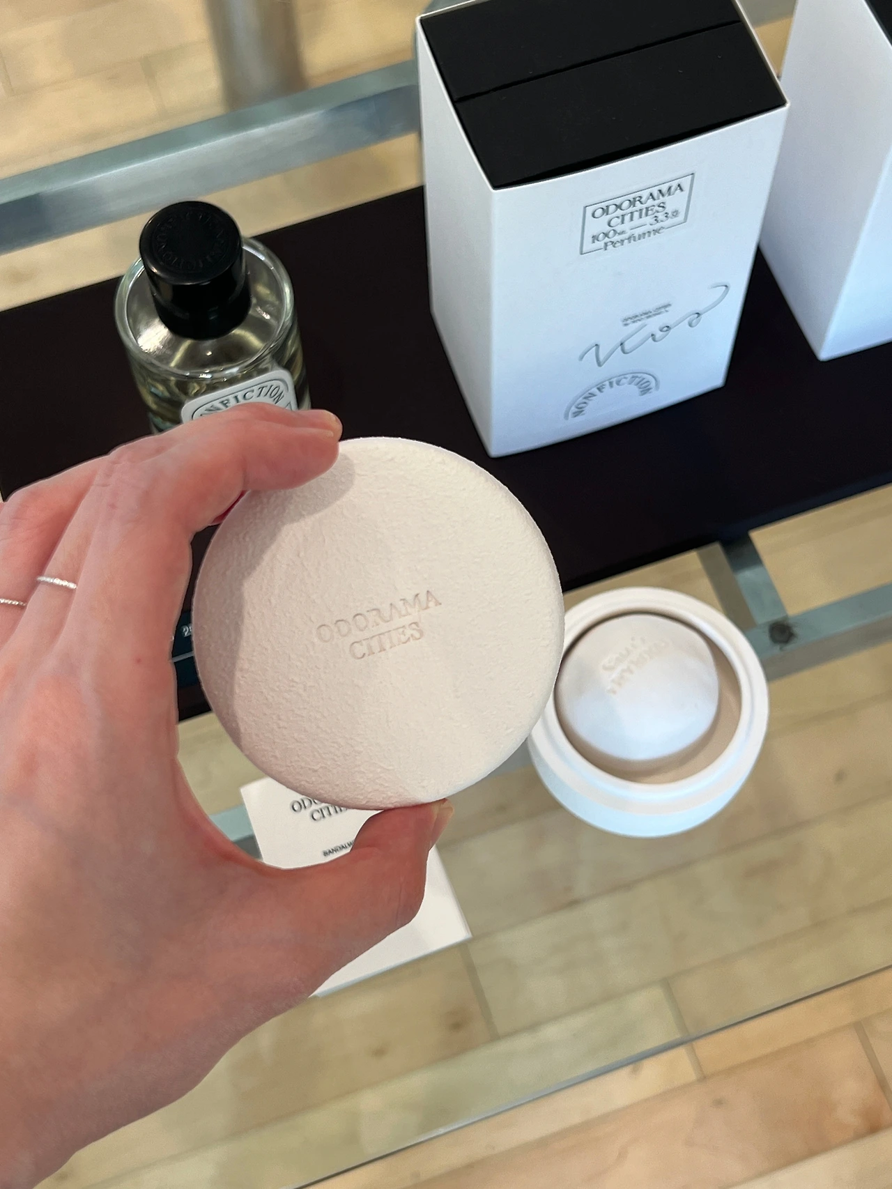 논픽션 삼청점은 지중해의 감성이 잘 느껴지는 공간과 오브제, 사진들로 구성되어있어 여유롭고 느긋한 분위기가 삼청과 잘 어울리는 가게였다. 특히 이 층에는 큰 통창이 뚫려있었는데, 가게 바로 앞의 정원을 볼 수 있어 시원하면서 아늑한 느낌을 받을 수 있었다. 향수를 머금은 스톤 디퓨저를 비치해 놓아 향수를 쉽고 편하게 감상할 수 있었다. 고객의 입장에서 한가지 건의사항이 있다면 코가 피로해질 것을 고려하여 커피 원두 등을 추가적으로 비치해 놓으면 좋을 것 같다는 생각이 들었다. 마지막으로, 방문 당시에는 베니스 비엔날레에 출품한 한국 작가랑 진행한 콜라보 상품이 있었는데, 콜라보 스토리나 작가의 소개가 제공되지 않아 콜라보의 특별함이나 신선함이 잘 와닫지 않았다. 예술을 잘 모르는 고객들을 위해 약간의 설명을 제공해주면 콜라보의 매력이 더 돋보였을 것 같다.