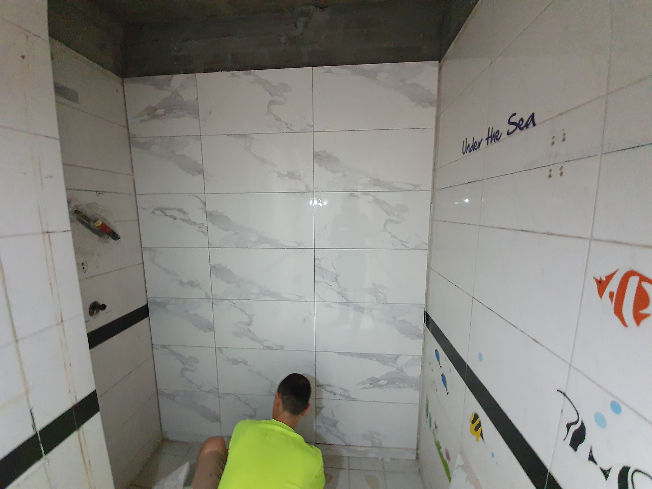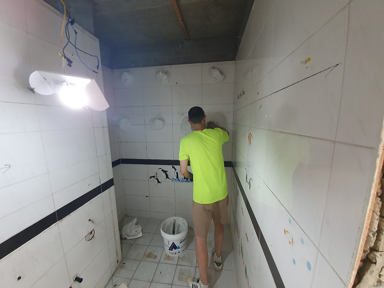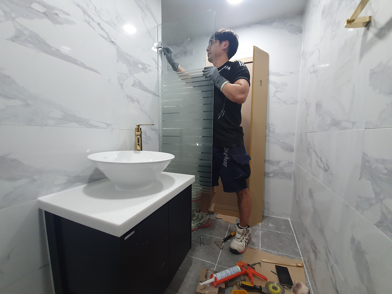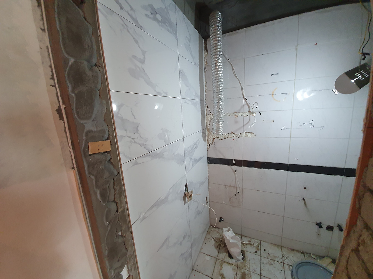 섀시 작업이 끝나거나 혹은 진행중에 타일작업을 시작한다.주 자재나 부 자재가 부족하면 작업 자체가 딜레이 되고 밀리기 때문에 넉넉히 딱 맞춰서 주문해야 한다(?) 잘 해야 하고 작업자 또한 손실 없이 잘 써야만 한다. 남들이 보기엔 전문가가 들어와 알아서 작업을 해주니 속 편해 보일지도 모르지만 속 모르는 소리다. 공정 사이에 쌓인 폐기물의 처리와 매끄러운 공정별 연계를 위해 우린 또 부리나케 움직여야 한다. 심지어 기술자라고 다 초 일류는 아니다. 감독하는 입장에서 보면 참 마음에 안들고 아쉬운 부분이 많이 보이기도 한다. 하물며 주인이라면? 리모델링에 대해 1도 모르는 사람이라도 돈을 쓰는 입장이 되면 일명 주인의 눈이라는 스킬이 발동된다. 작은 티끌 하나도 찾아내 버리는 신묘한 힘 말이다. 이 대목에서 고개를 끄덕이는 사람이 분명히 있을 것이다. 어떤 입장에서건..