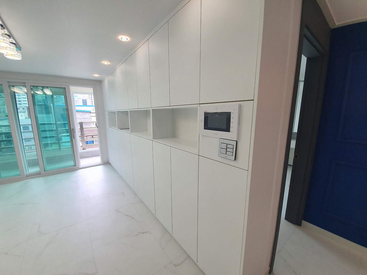 혹여, 포인트 벽이나 아트 월을 만들어야 할 경우, 기존에 설치된 조명 외에 추가로 매입등이나 간접조명등을 설치하고자 한다면 이 기간에 미리 전선 작업을 해 둔다. 현관까지 타일 작업이 끝났다면 입구 중문도 설치해 준다.