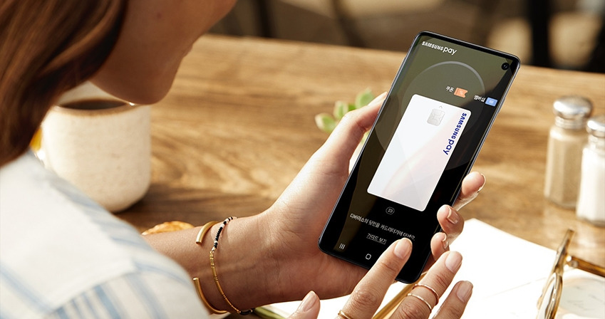 삼성 스마트폰을 활용해 삼성페이를 사용하는 모습 출처 - Samsung Newsroom