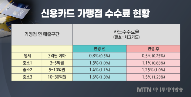 신용카드 가맹점 수수료 현황 출처 - 머니투데이방송