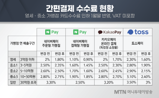국내 간편결제 서비스 수수료 현황 출처 - 머니투데이방송