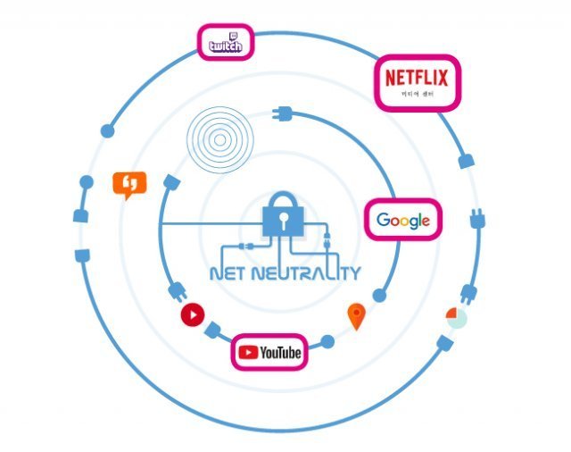 기본적으로 인터넷 망에서의 정보전달(수신·발신)은 누구도 돈을 내거나 받지 않습니다. 또한 정보전달 과정에 어떠한 조건도 없어야 하고 차별도 있어서는 안 됩니다. 이것을 우리는 '망 중립성의 원칙'이라고 합니다.