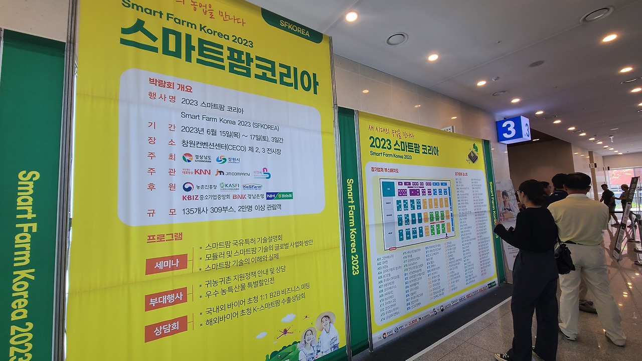 지난 6월 15일(목)부터 17일(토)까지 3일간 창원컨벤션센터(CECO)에서 진행된 '2023 스마트팜 코리아'는 "새 시대의 농업을 만나다"라는 주제로 135개 사, 309개의 부스로 구성되어 진행되었습니다.
